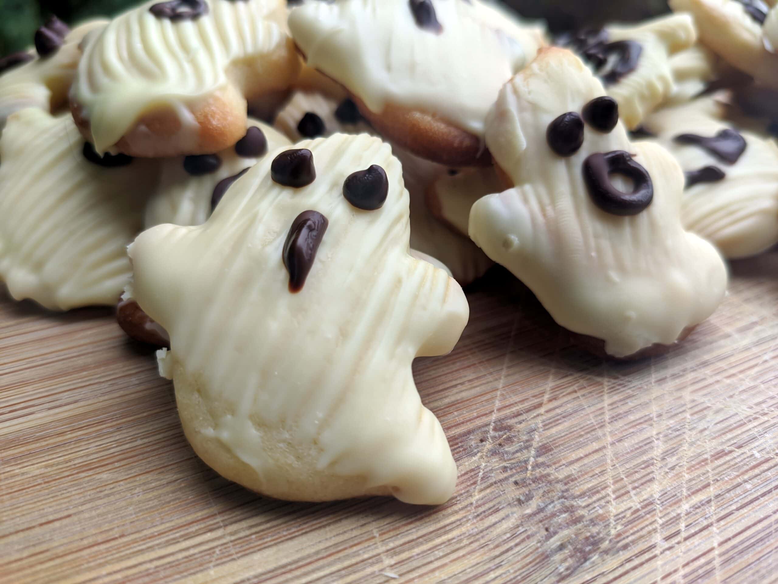 Bolachinhas Fantasmas – Awwww ke lindos fantastmas, só precisas mesmo de arranjar os moldes para cortar o resto é simples! Ou existem por vezes bolachinas comerciais de fantasmas, aí é mesmo só decorar!