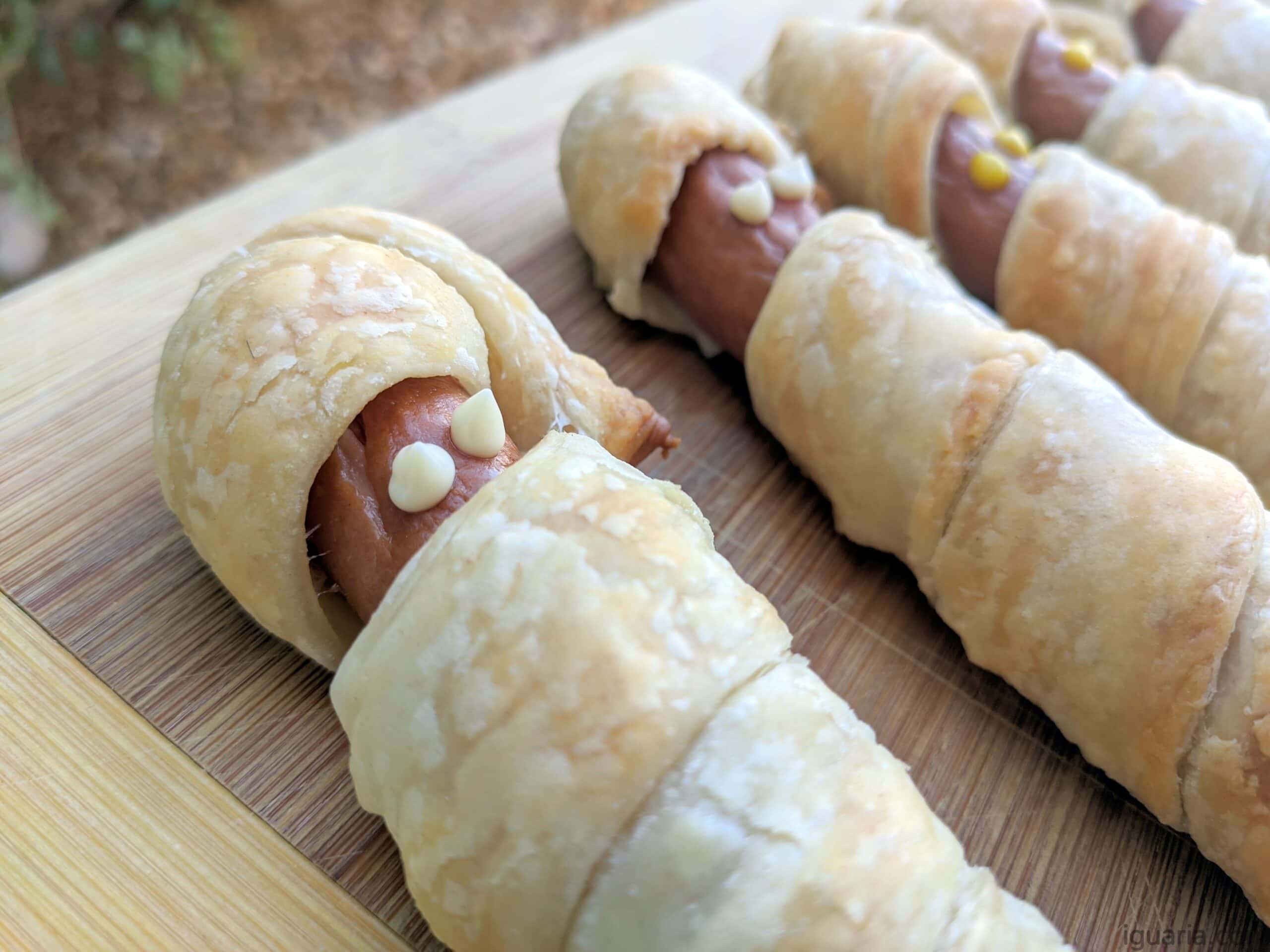 Múmias de Salsicha Folhadas para Halloween – Hahahahaah, ok um pouco paralolas, mas perfeito para o dia das Bruxas, podem ver por aqui pelo Iguaria milhares de folhados de salsichas muito mais saborosos e complexos, mas este é perfeito para a criançada! :D