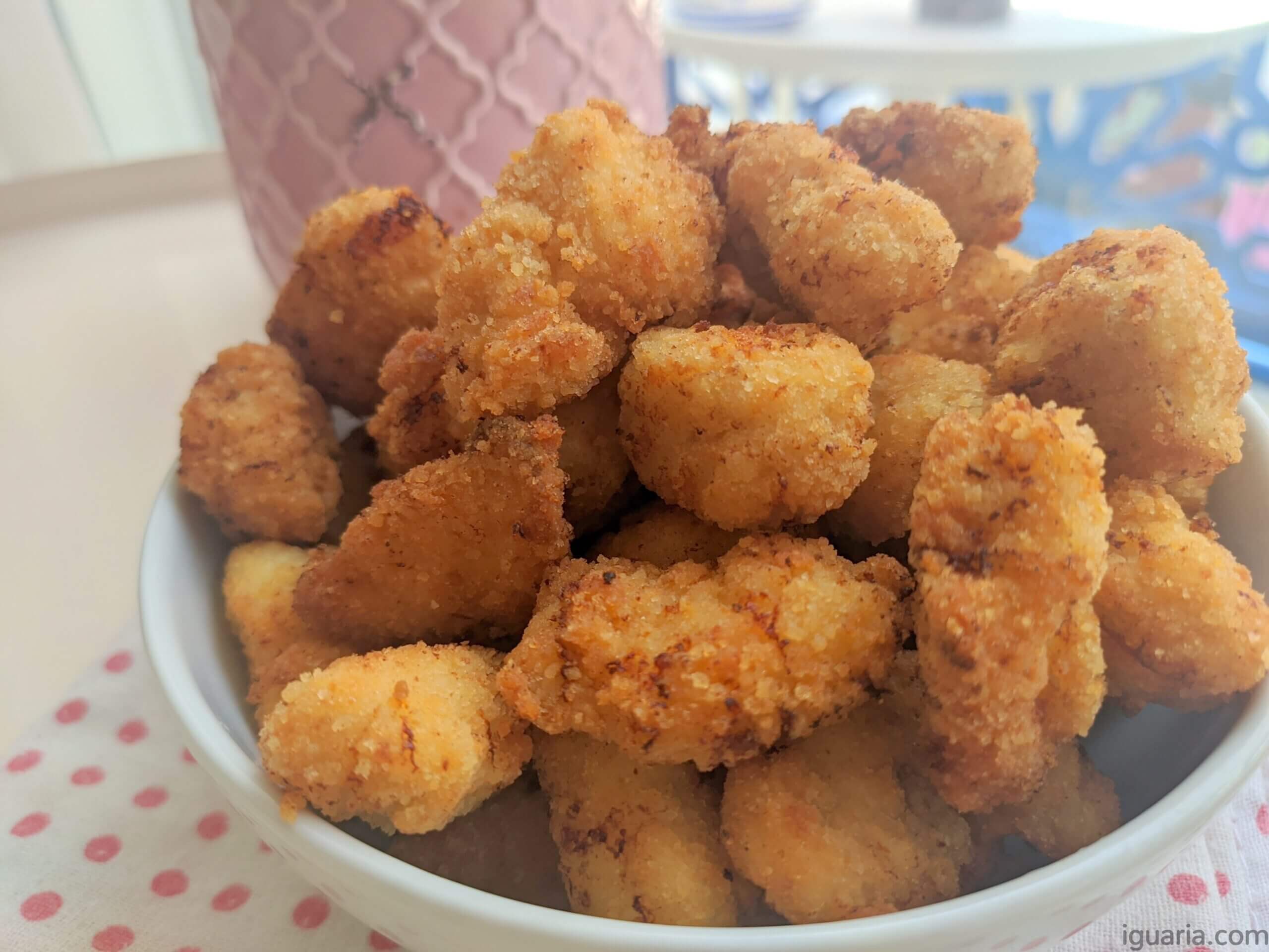 Frango Panado Americano Popcorn Chicken – Franguinho delicioso e estaladiço aos pedacinhos… nada a ver com Halloweeeeeeennn mas arranjas uns molhinhos picantes mais para os vermelhos e já tens algo mais temático, não? :D