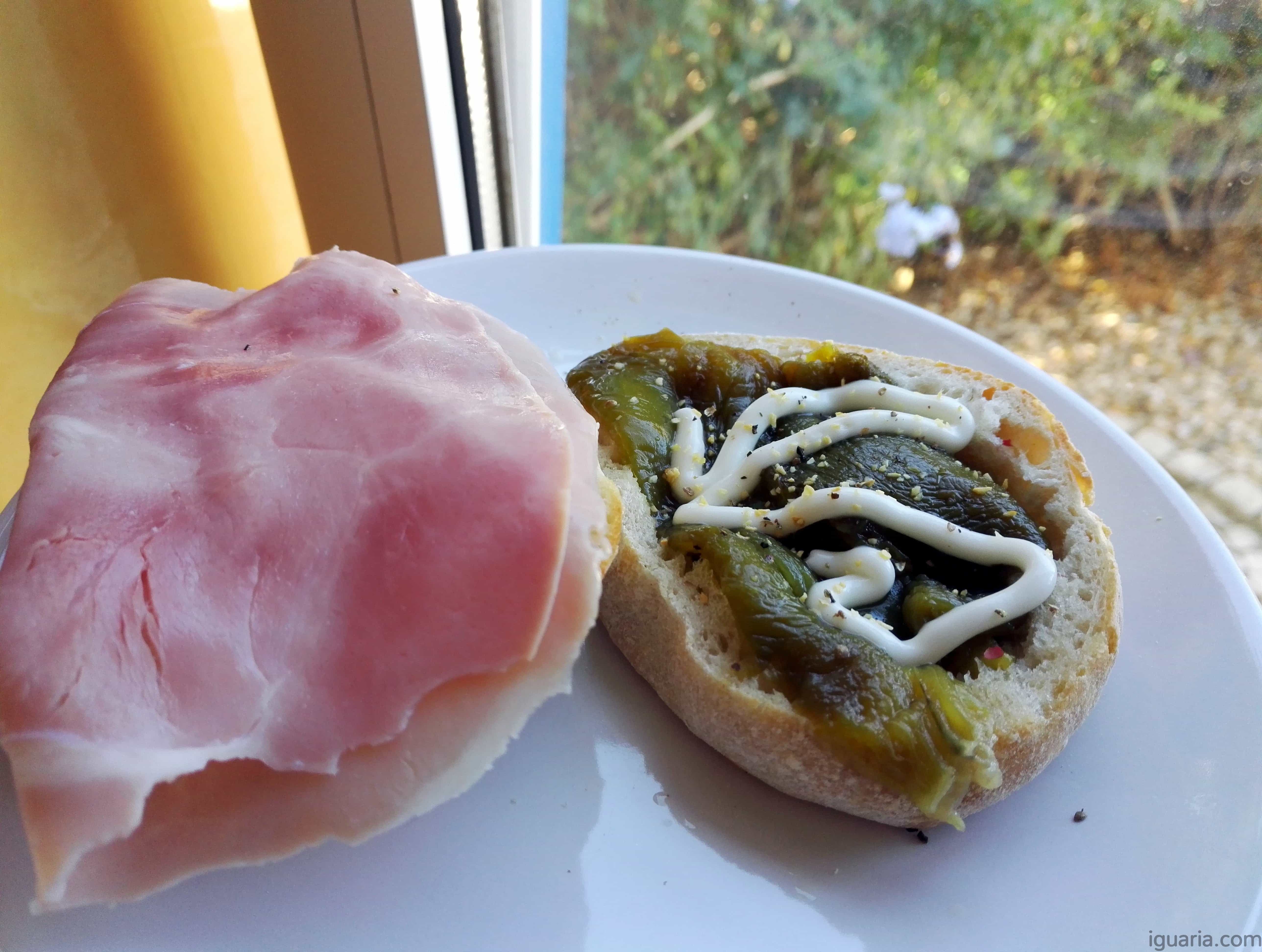 Deliciosa tosta com queijo, fiambre e pimento verde assado, ficou super catita.
