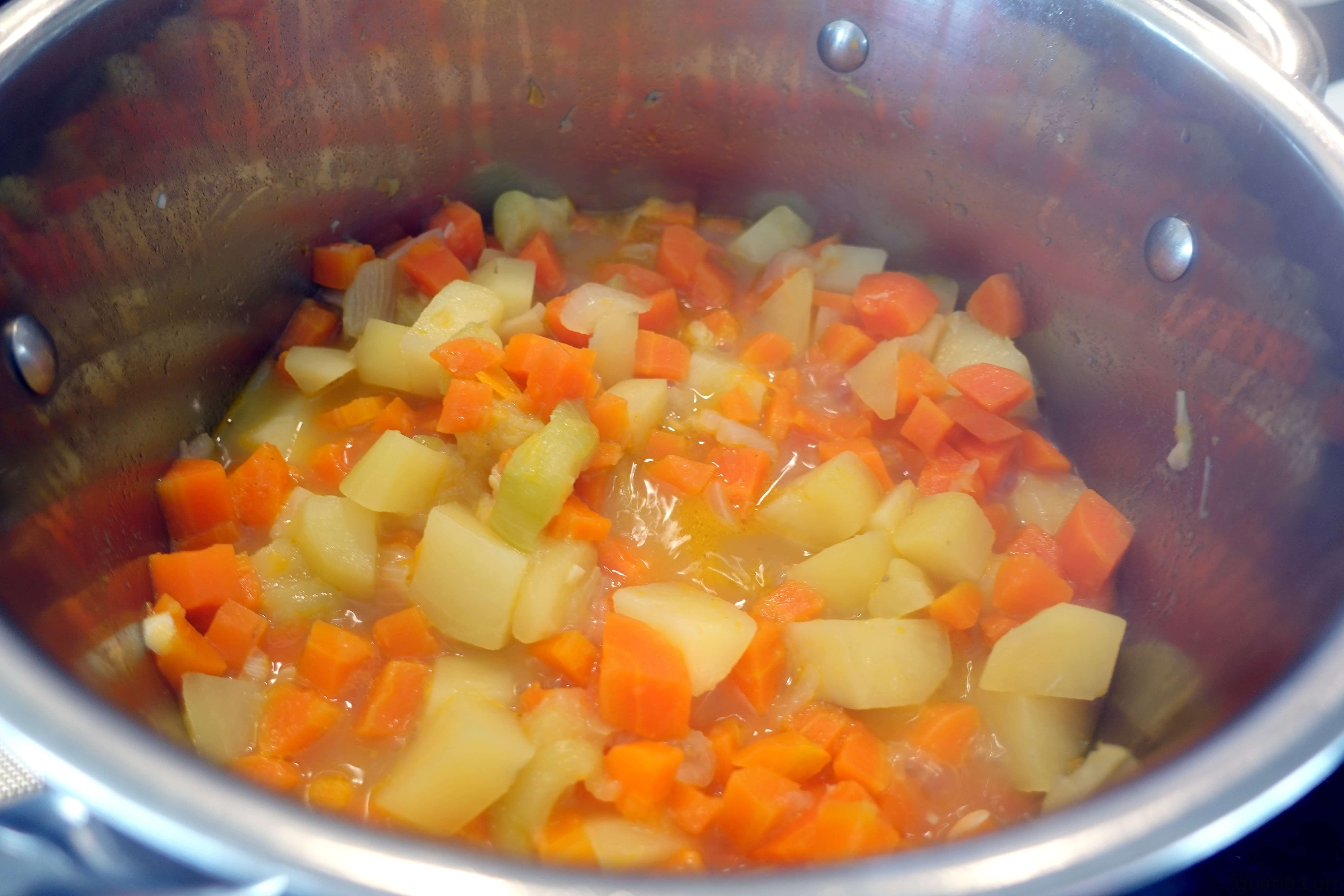 Este é o género de sopa que podes fazer mesmo num instante, eu diria que fiz tudo em 30 minutos, mas podia ter feito em 20 minutos se estivesse com pouco tempo, também eu adicionei uns pedaços de curgete que tinha a mão e só mostra que podes adicionar este ou aquele vegetal sem grande problema. Vamos á receita!