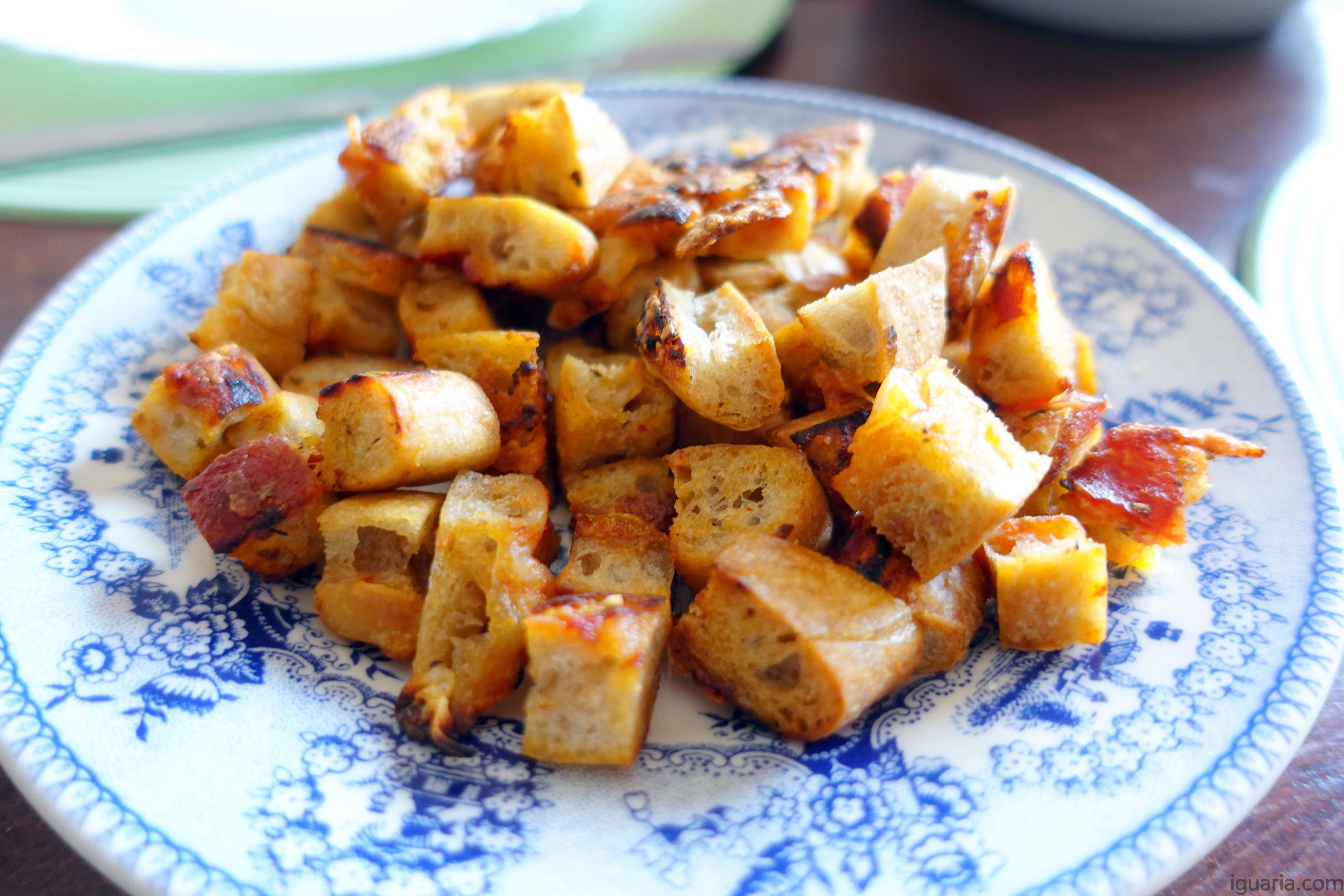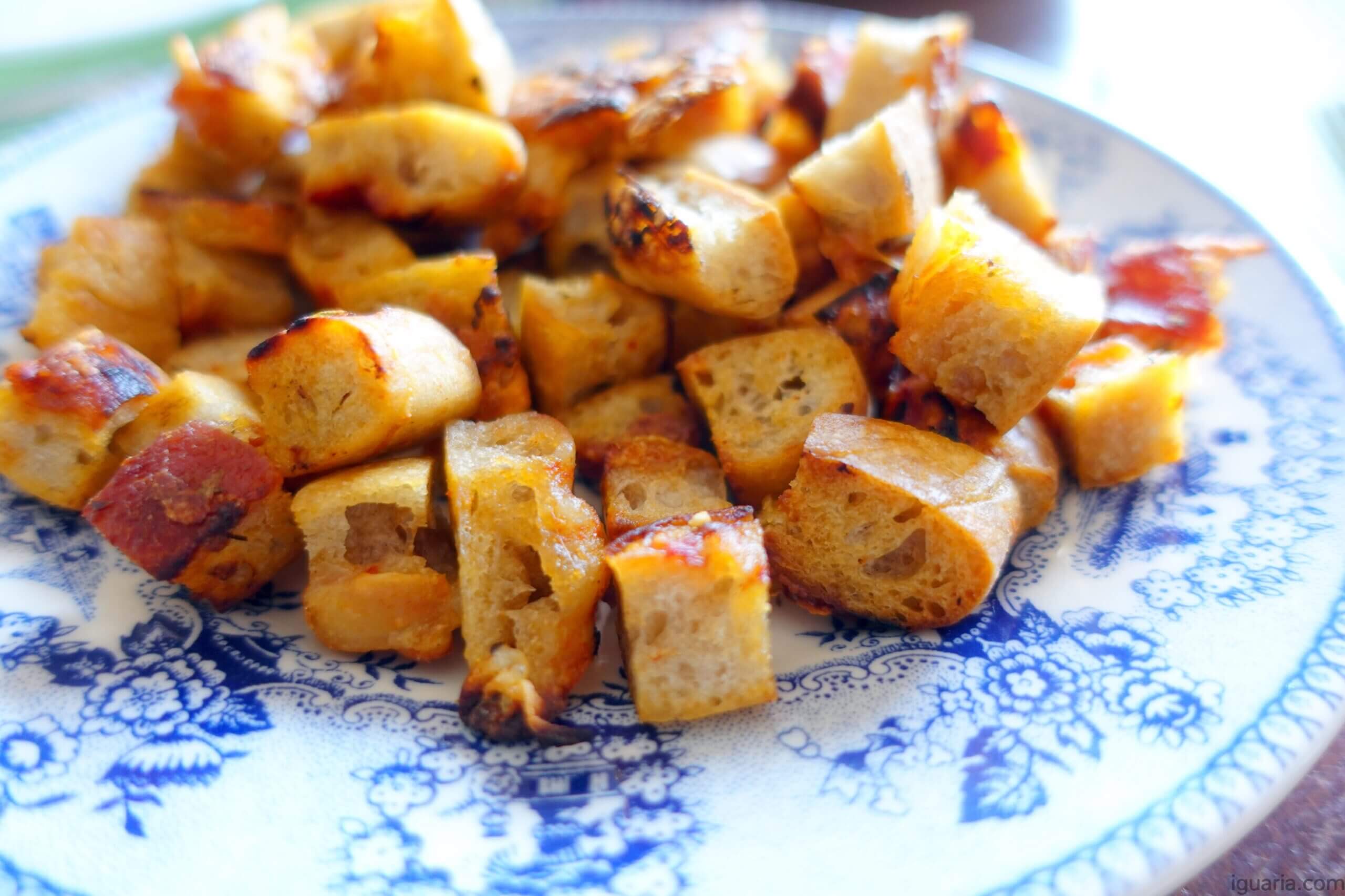 Outra dica boa com croutons é que depois de feitos podes triturar todos e fazer um pão ralado temperado perfeito como cobertura para caçarolas e outros pratos!