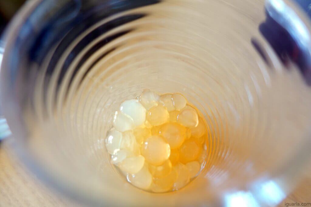 Depois de cozinhadas, o xarope/caramelo vai não só adocicar as pérolas mas vai manter estas hidratadas e mastigáveis, é isso que queres! Mas também nota que se calhar precisas de adicionar mais açúcar para ficar ao teu gosto, a calda é mais para dar sabor á tapioca e manter estas hidratadas e não tanto para adocicar a bebida.