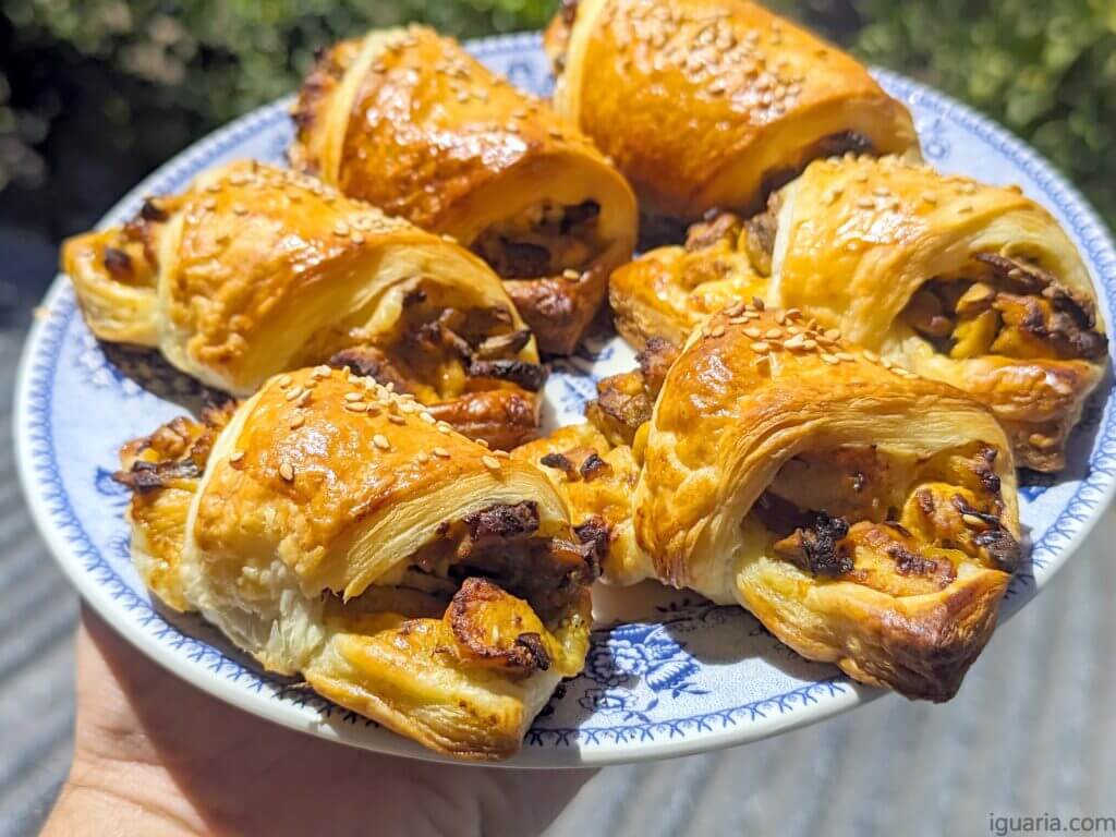 Receita de Pasteis Folhados Recheados de Caril de Frango com Cogumelos