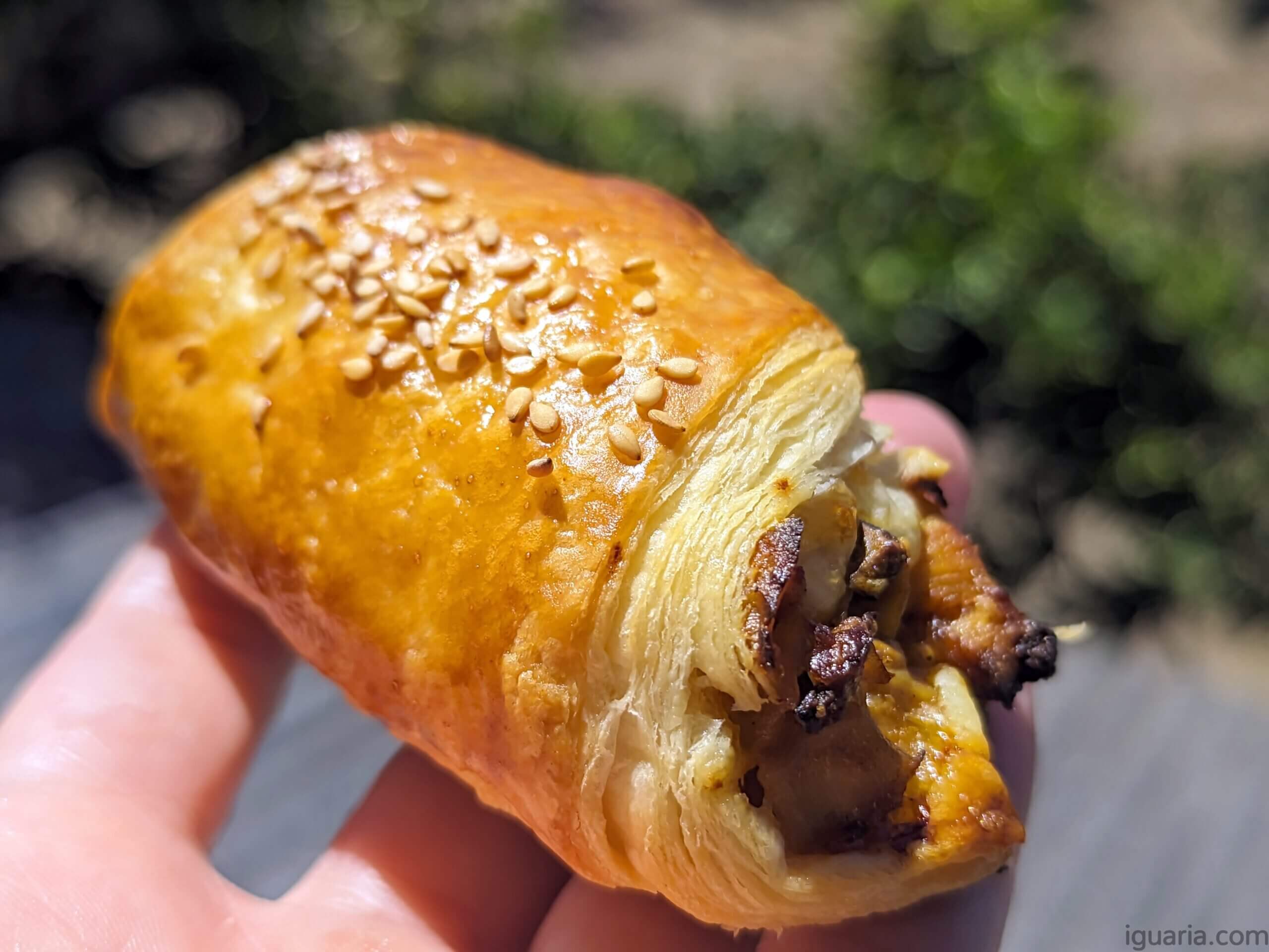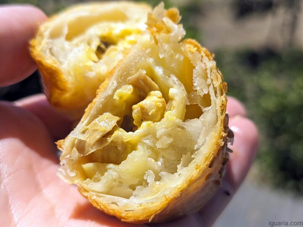 Notas: Se o teu folhado ficar mole em vez de crocante, é provável que o recheio estava muito quente quando adicionaste, deixa arrefecer um pouco antes de adicionar á massa.