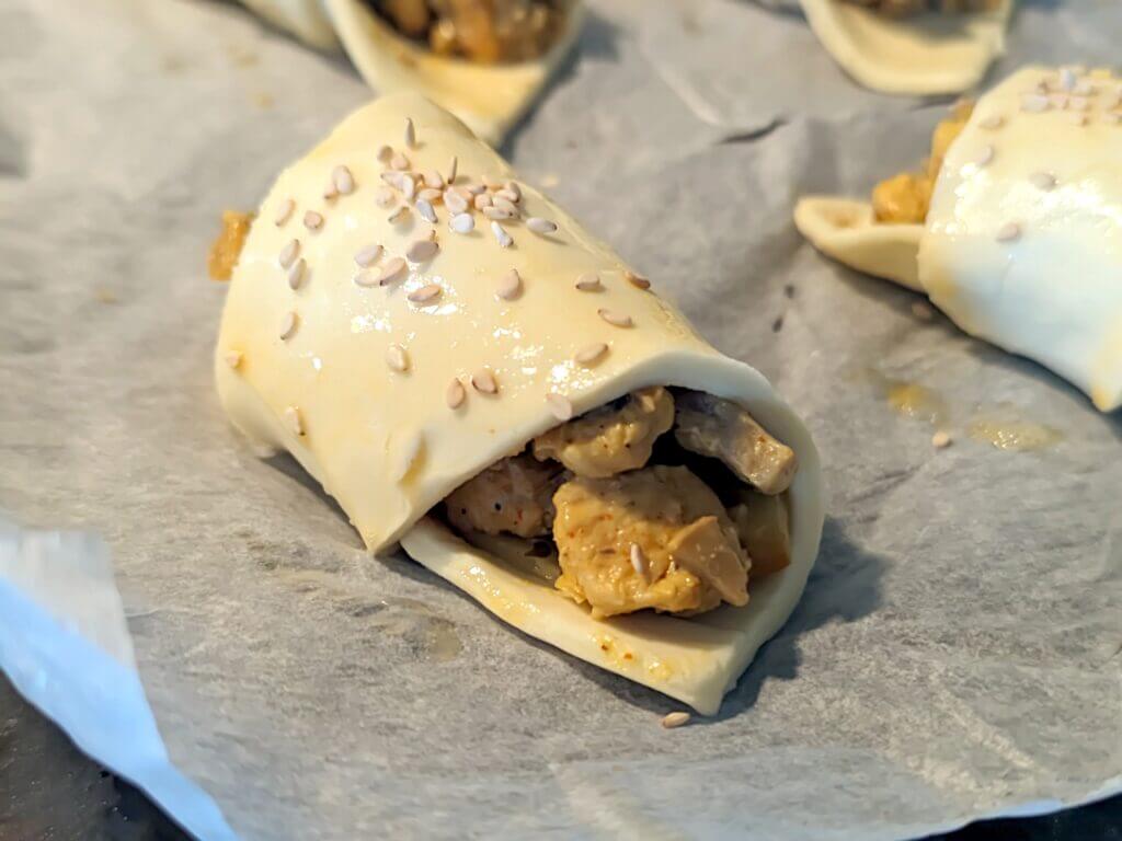 Pasteis Folhados Recheados de Caril de Frango com Cogumelos