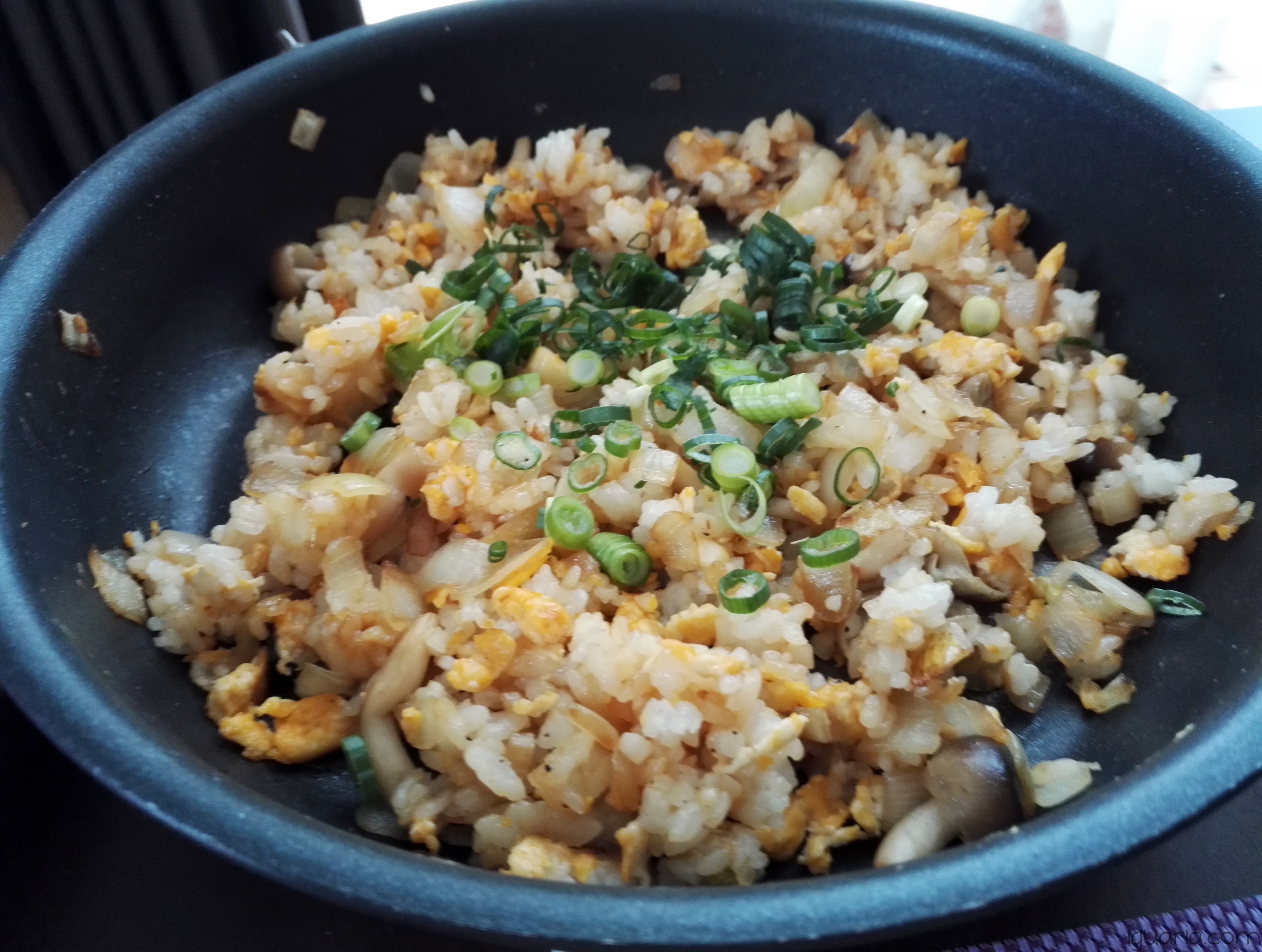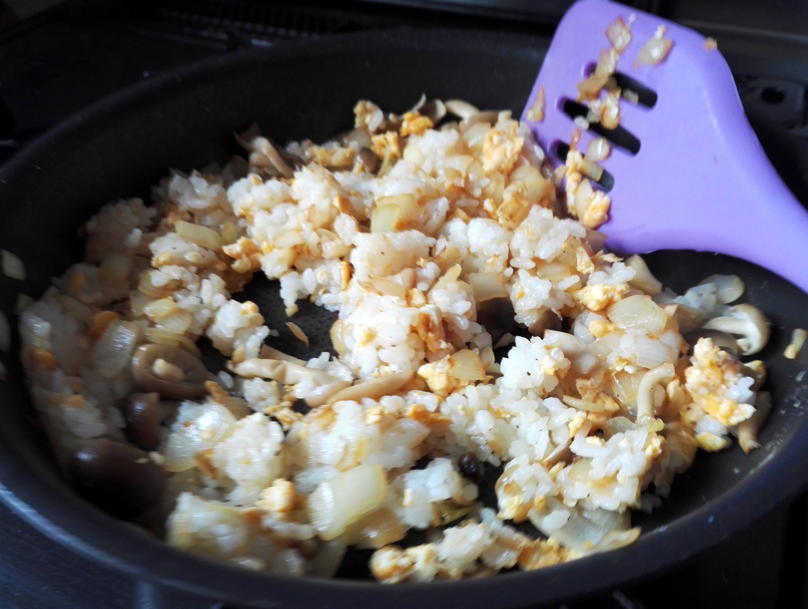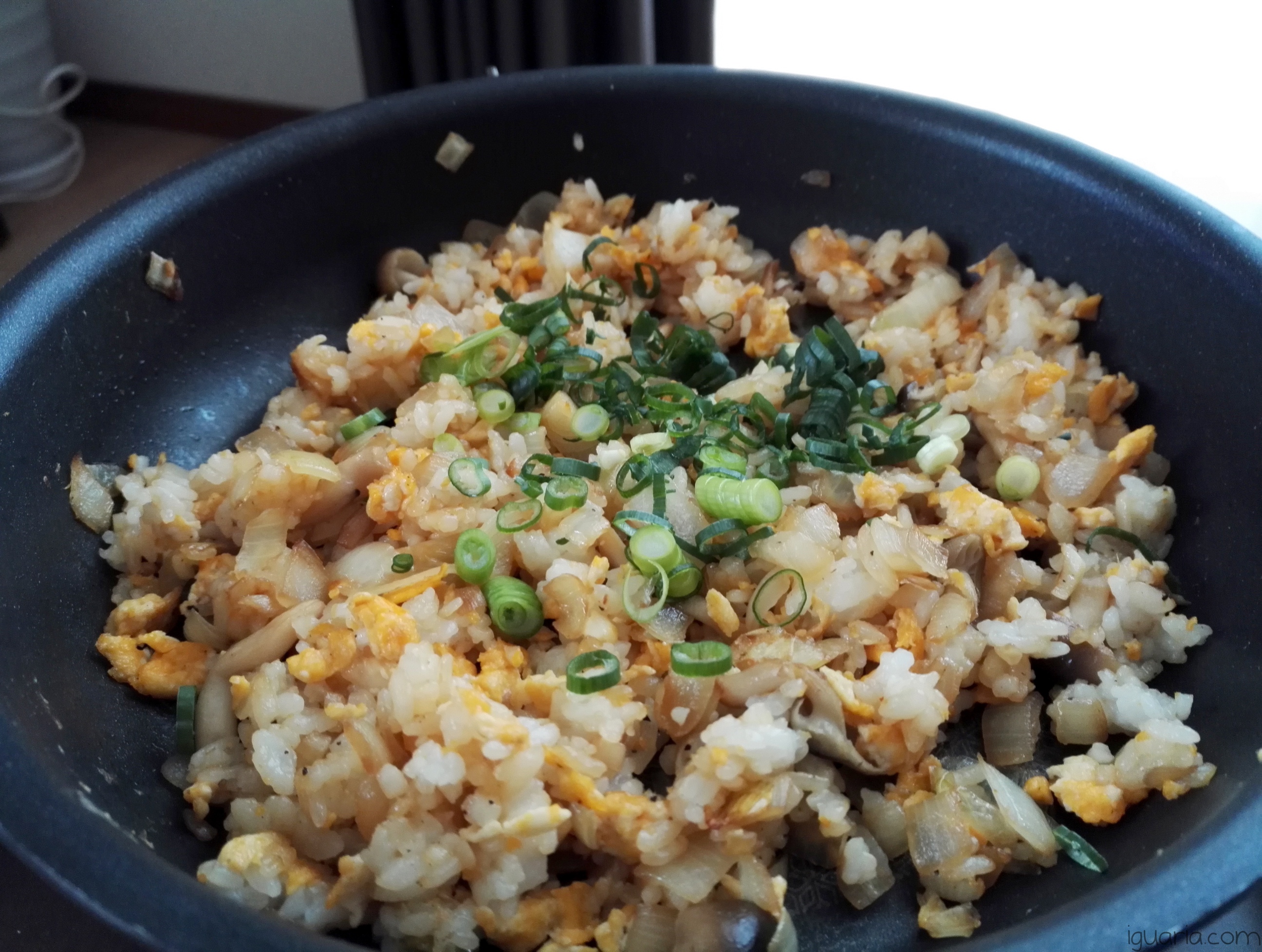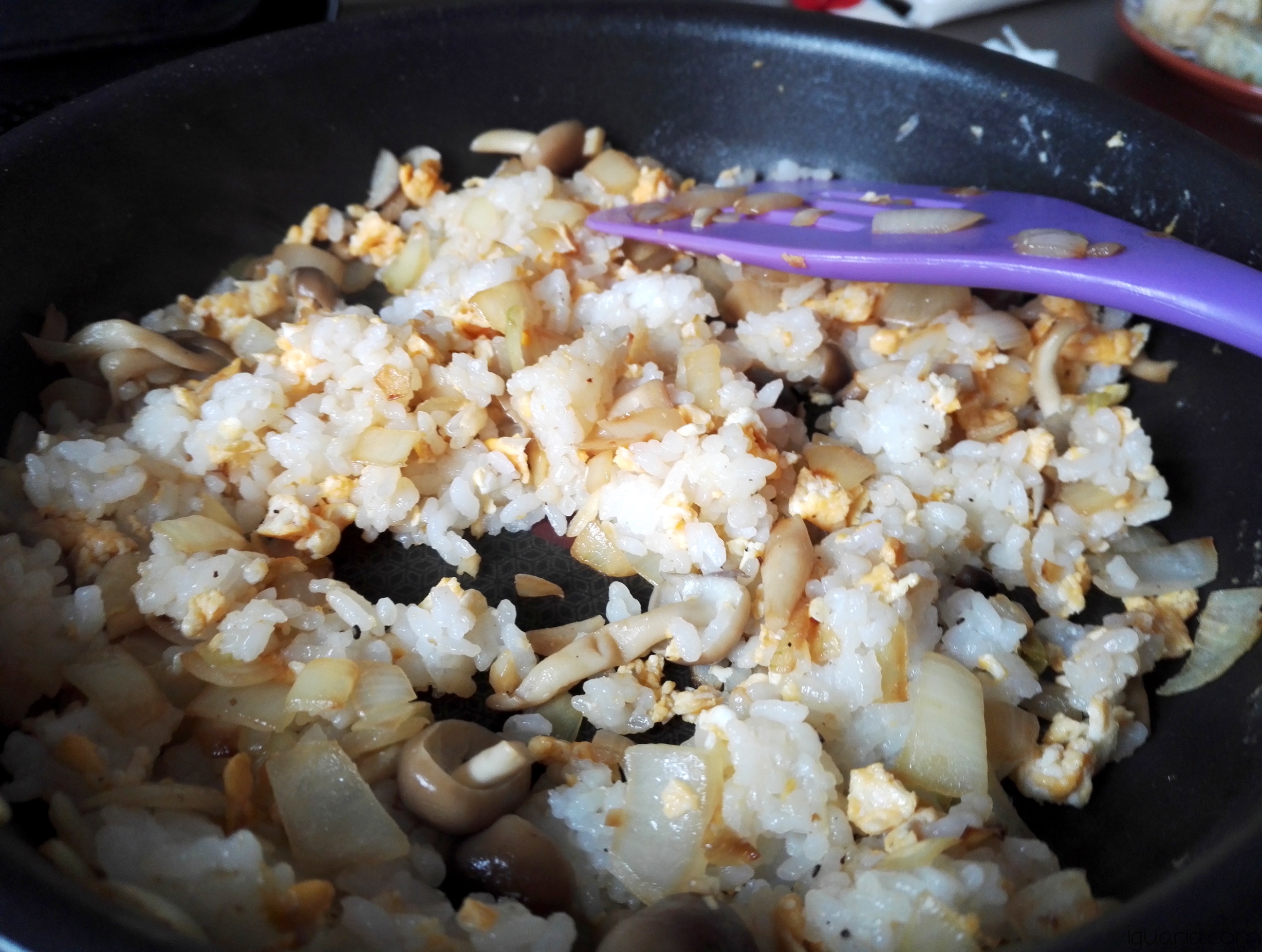 Prato simples de aproveitar restos, especialmente arroz já cozido.
