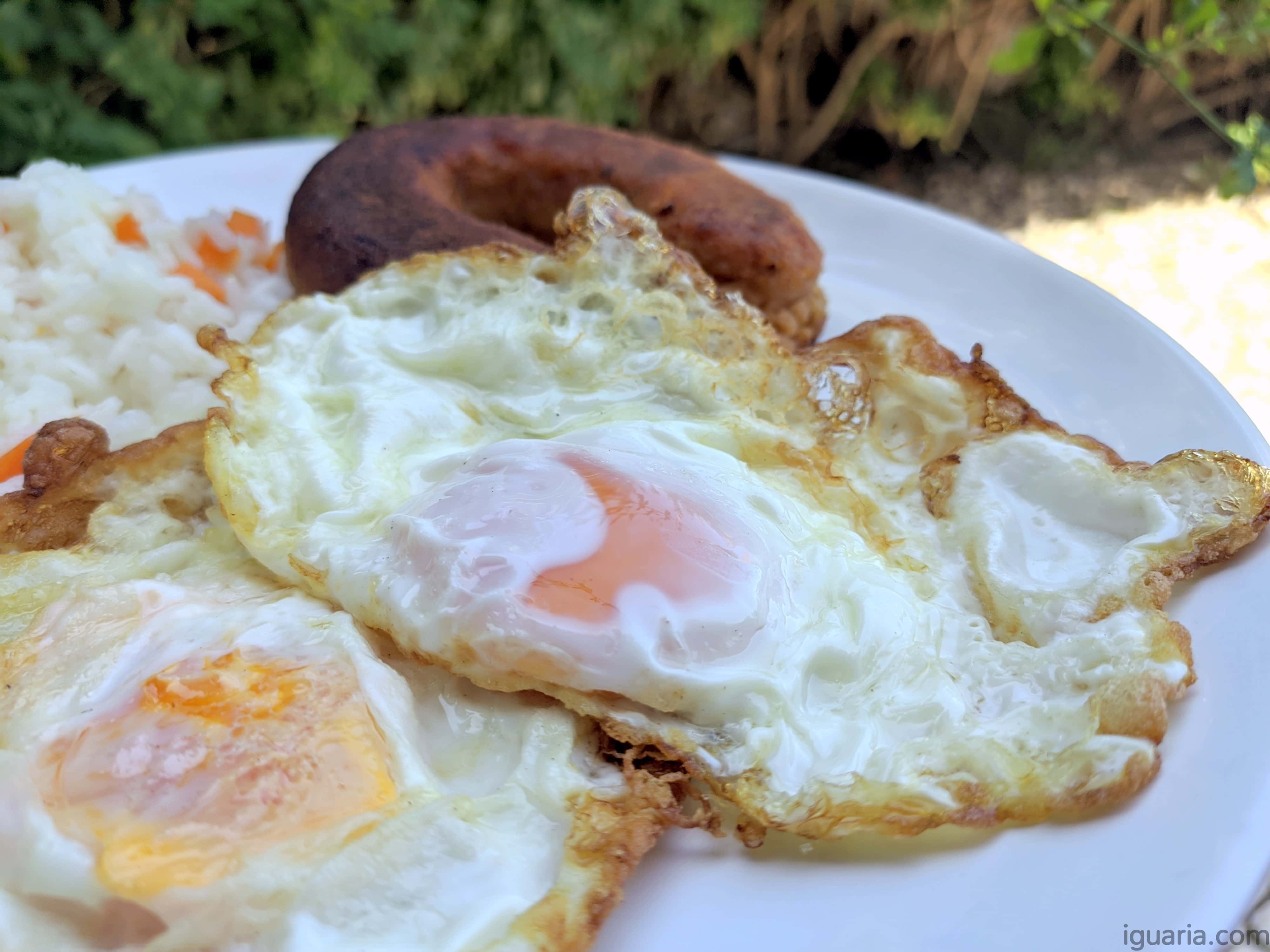 Receita super simples e deliciosa de alheira transmontana frita com ovo a cavalo e arroz de cenoura.
