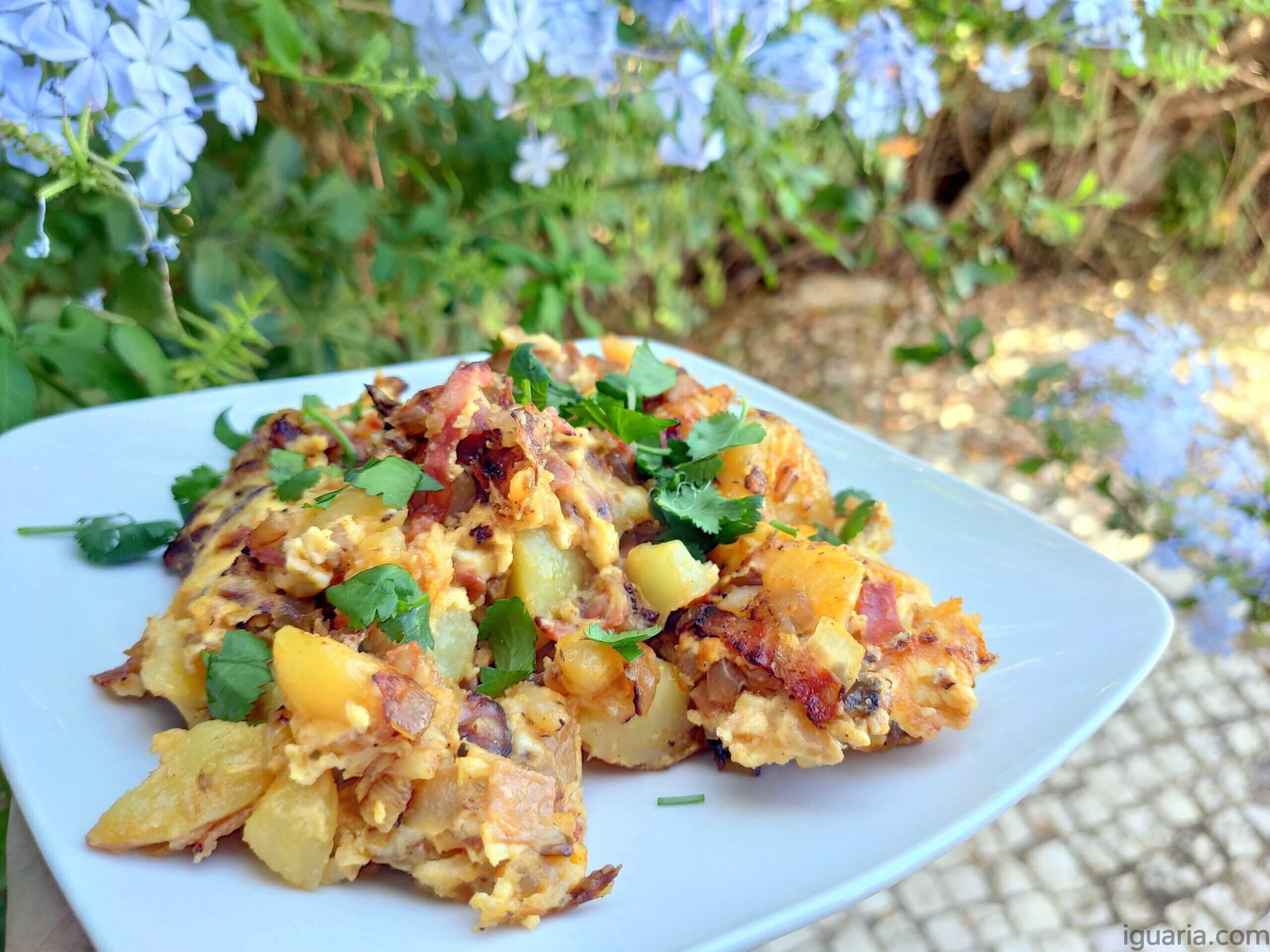 Receita de Tortilha Espanhola bem Rústica com Alho e Chouriço
