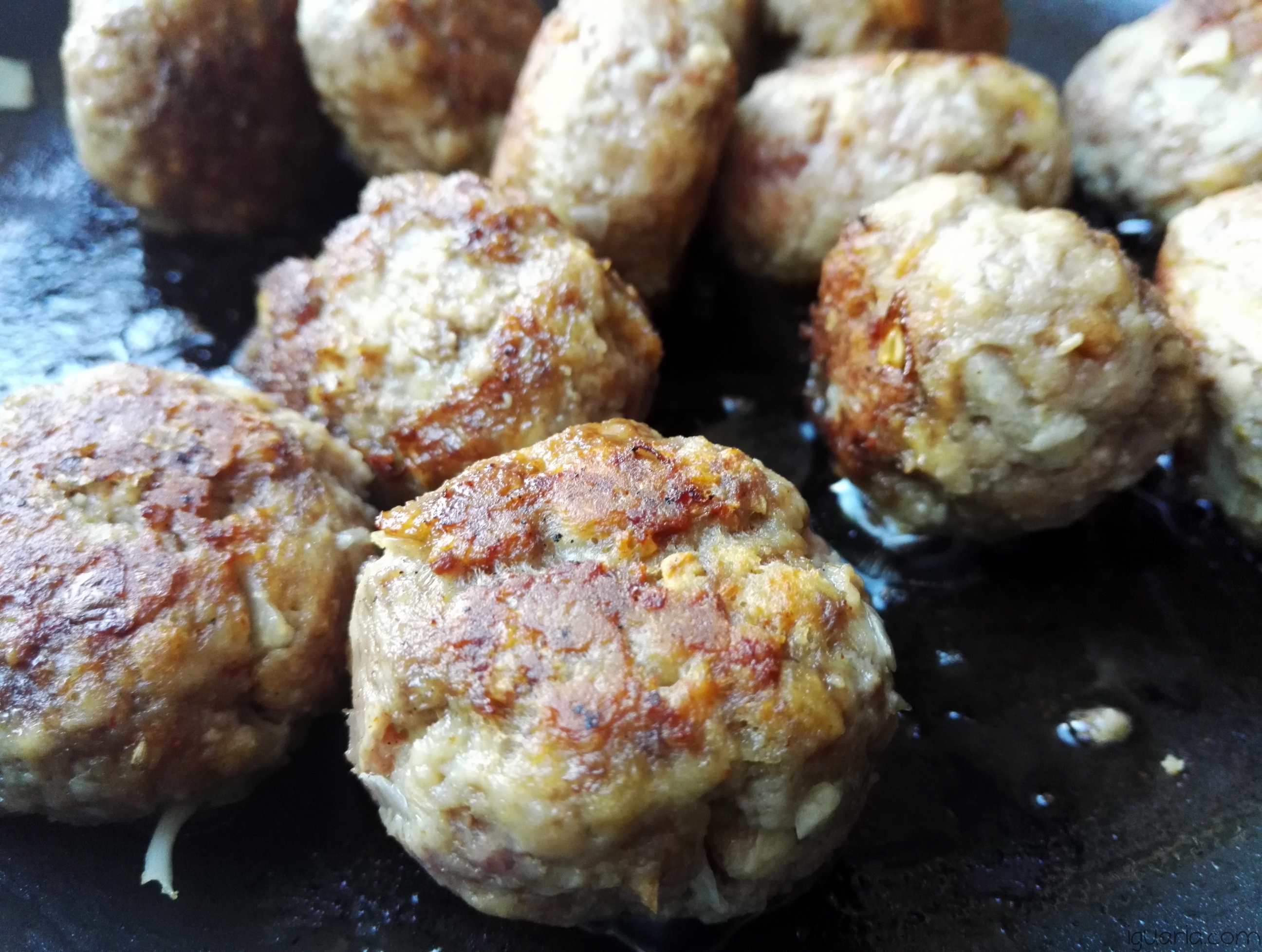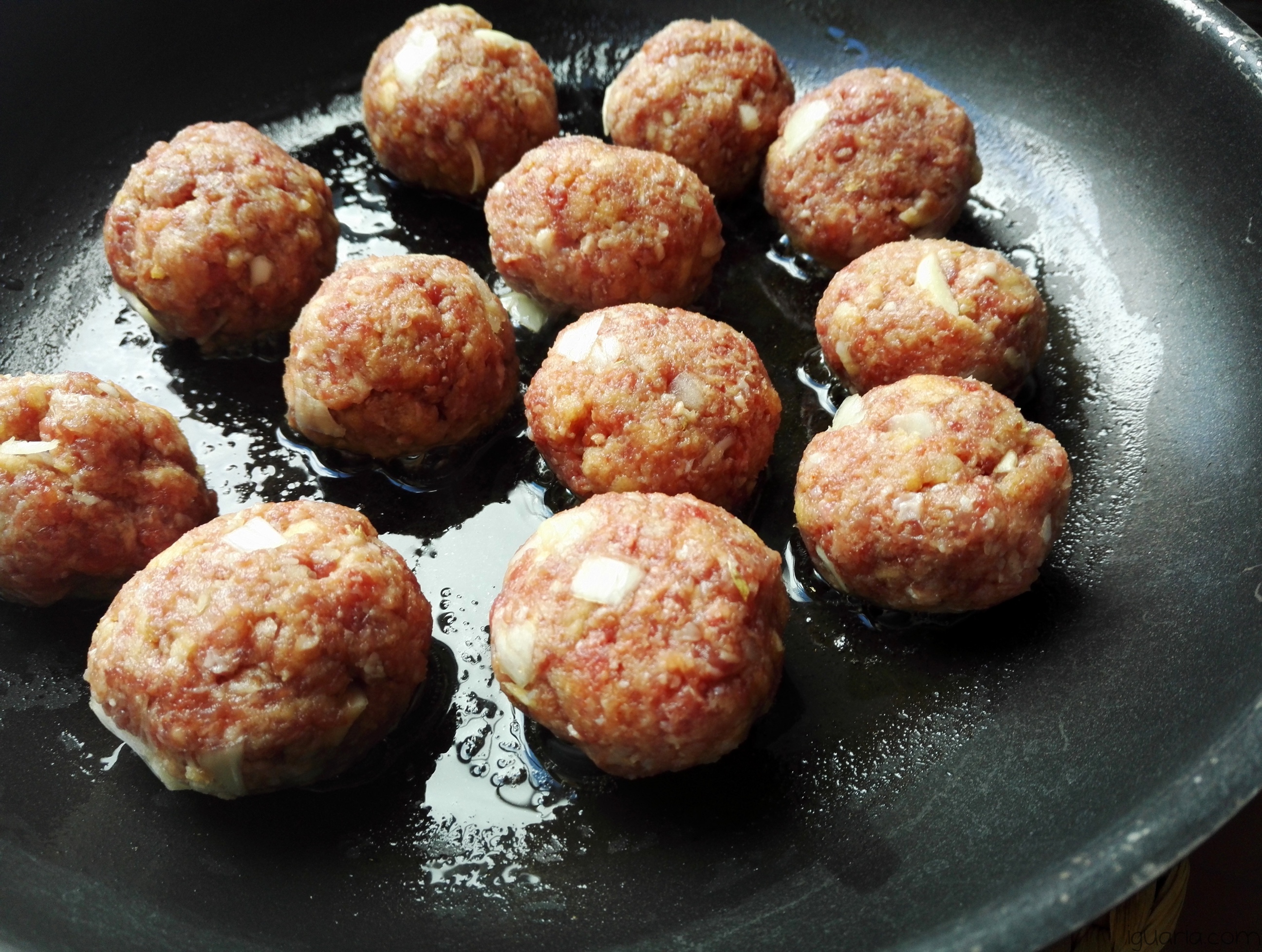 Aqui está outra receita deliciosa de almôndegas, neste caso temos uma mistura de carne de vaca e porco o que é uma mistura excelente para almôndegas, porque cria uma mistura de sabores interessante e torna as almôndegas mais carnudas e mais baratas do que usar só carne de vaca, mas também com um sabor mais intenso que usar só carne de porco.