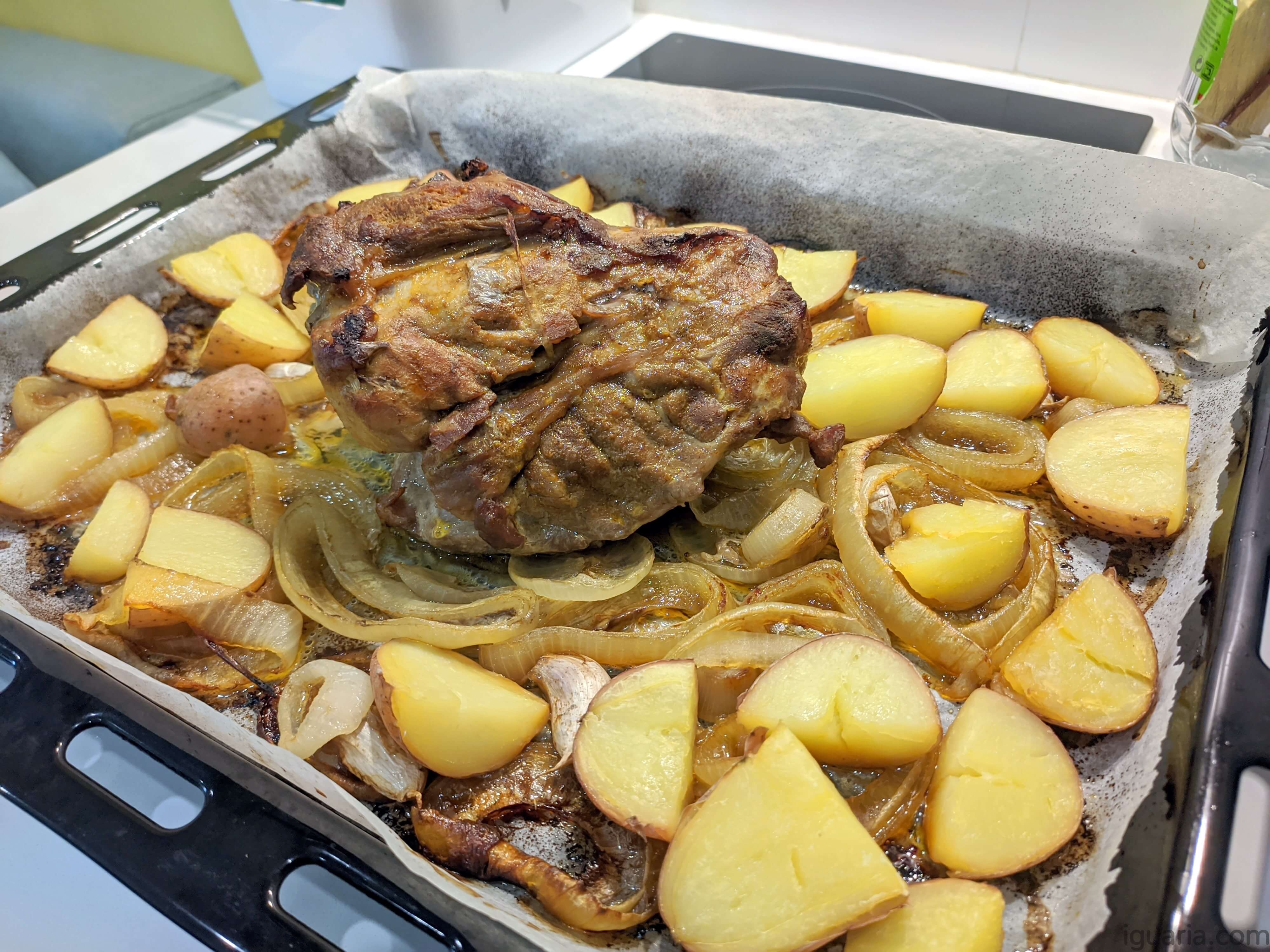 Cachaço de Porco no Forno com Batatinhas Assadas