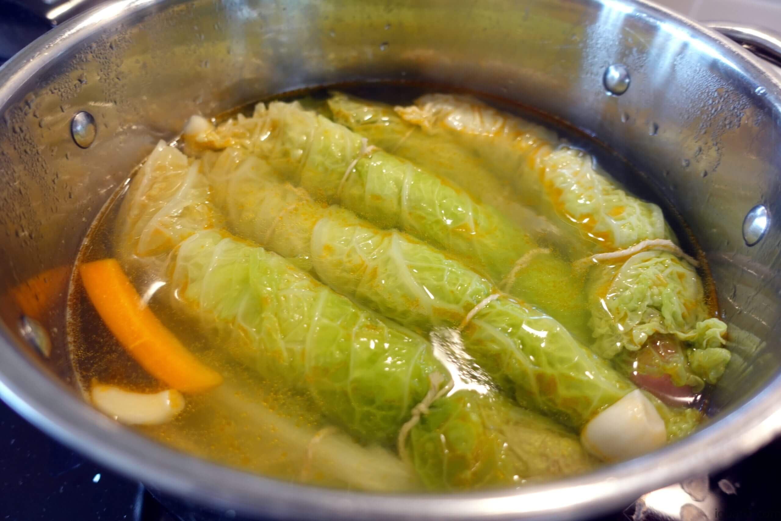 Receita de Salsichas Frescas Enrolada em Couve Lombarda Cozida