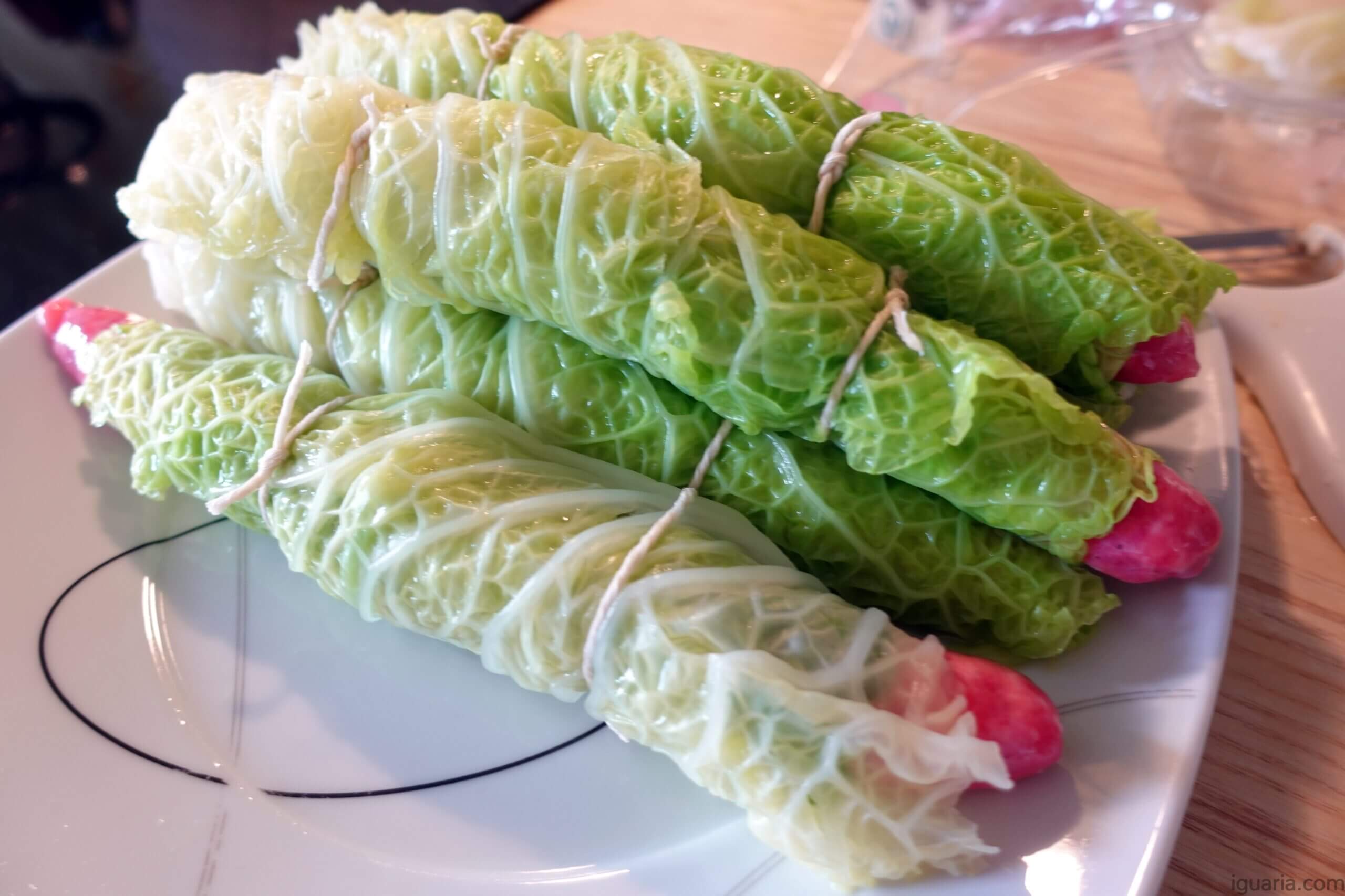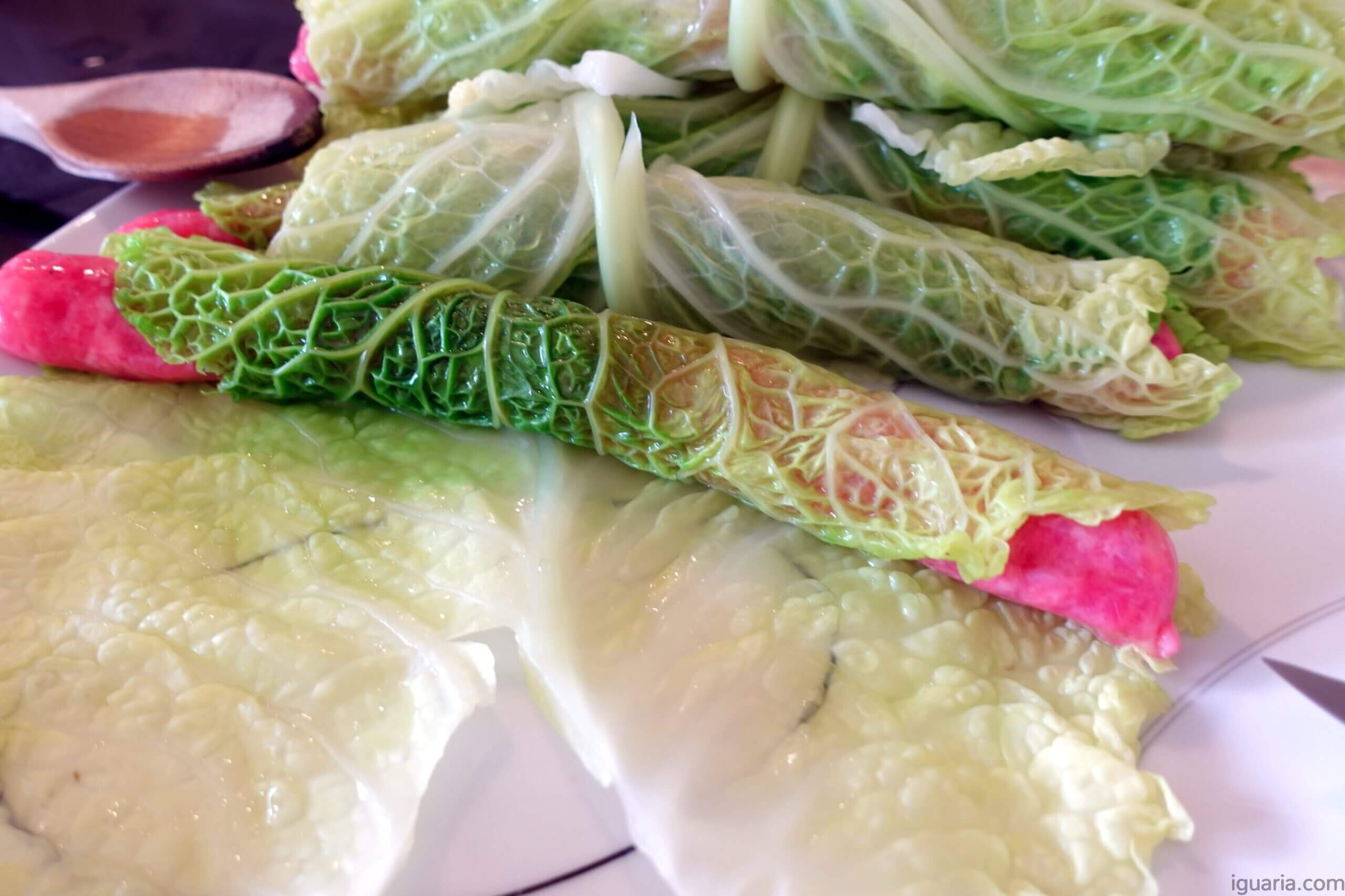 Salsichas Frescas Enrolada em Couve Lombarda Cozida