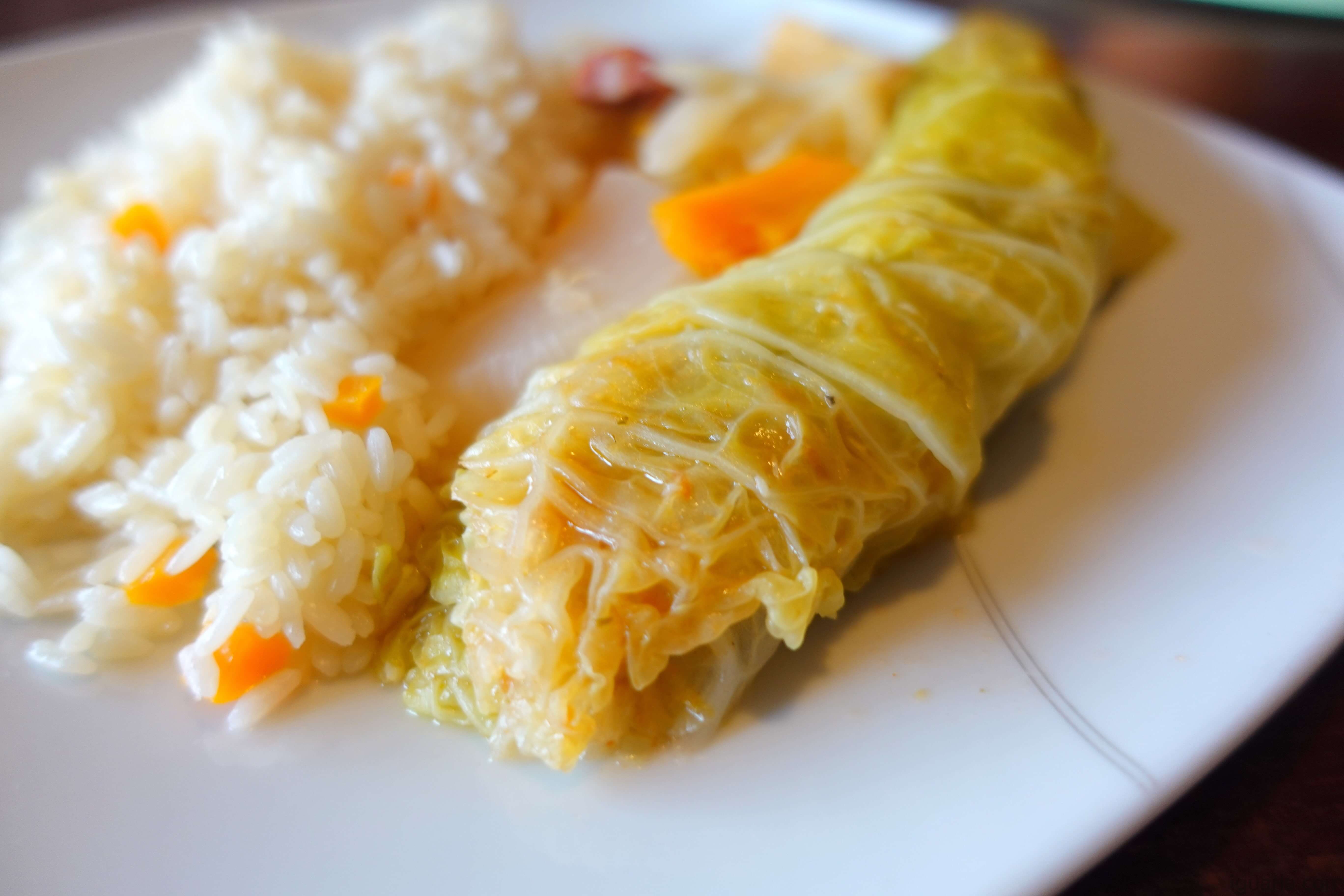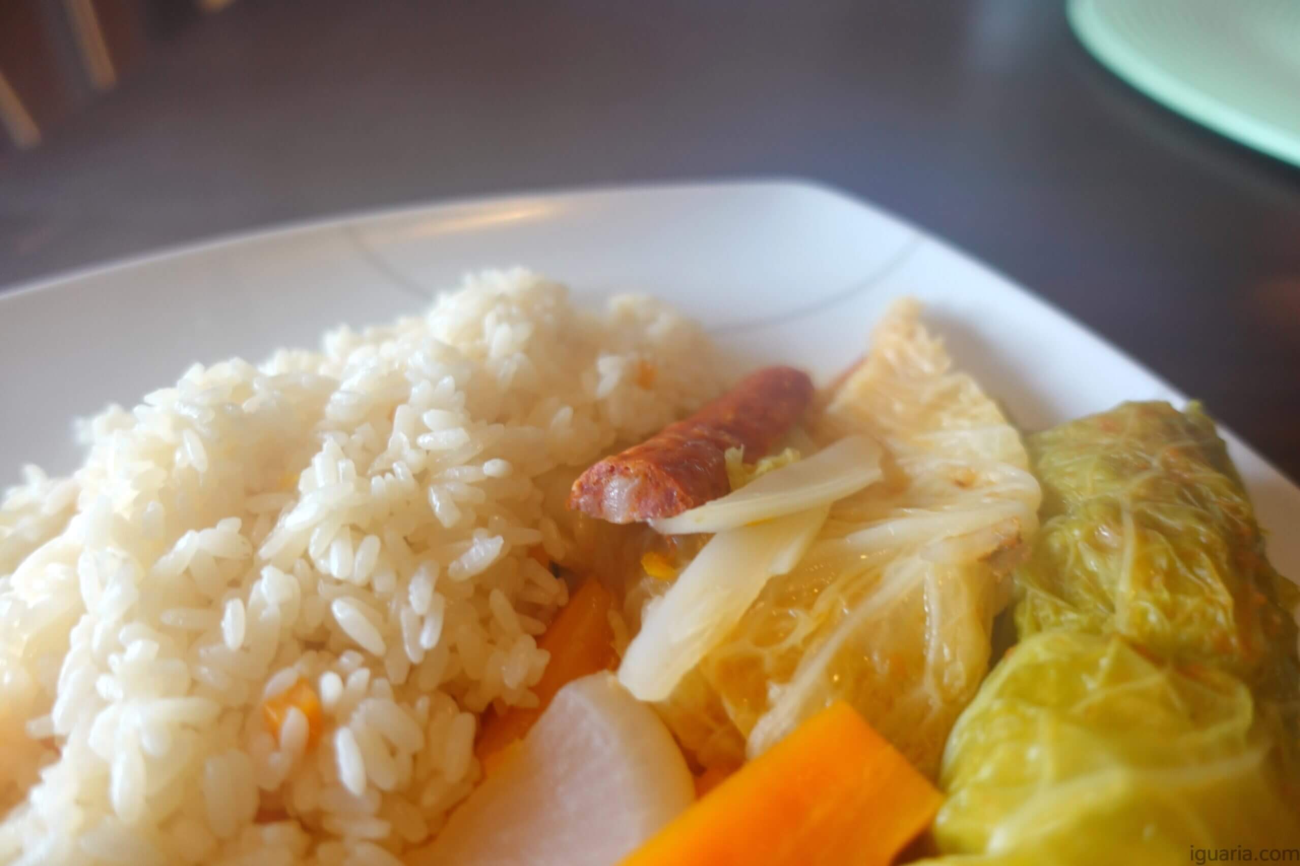 - Prova o arroz e retifica de temperos se achares necessário e já está pronto a servir, escorre os rolos de couve com salsicha com um pouco de cenoura e linguiça, com umas colheres do arroz, bom apetite e Feliz Natal!