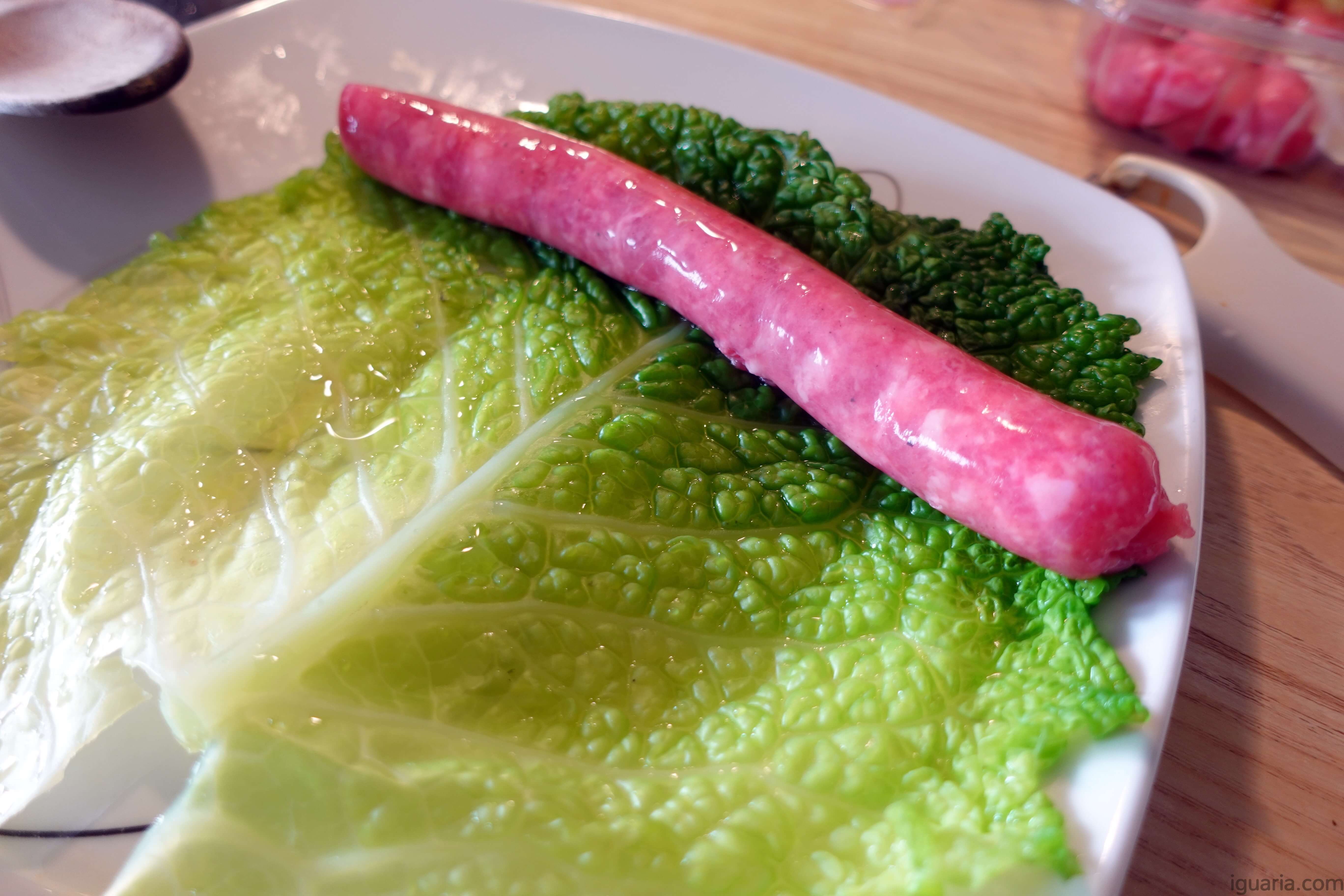 Salsichas Frescas Enrolada em Couve Lombarda Cozida