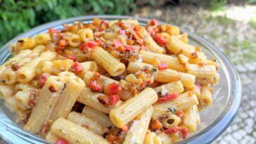 - Por fim cobre com as coberturas que cozinhaste e uns pedacinhos de tofu cortado em cubos e já está, bom apetite!