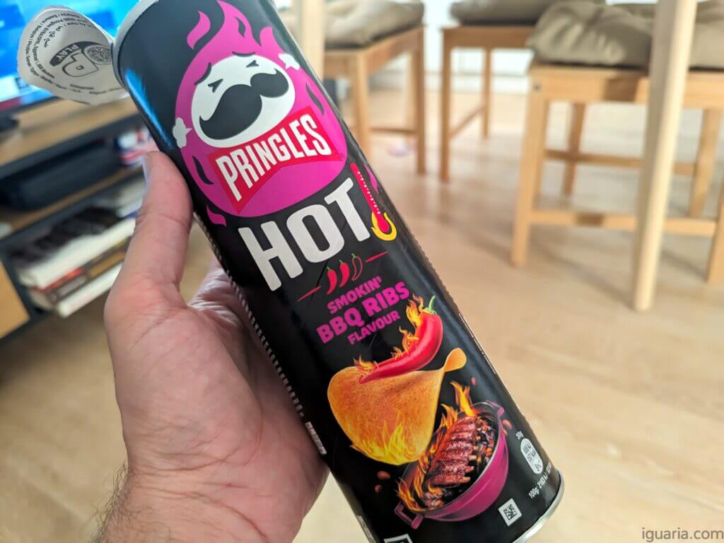 Para hoje temos outro sabor de batatas fritas Pringles, neste caso a versão Hot Smokin BBQ Ribs, eu gosto mais de batatas fritas que Pringles, mas acho que as Pringles acabam por ter aromas muito mais interessantes, pelo menos com o que temos disponível em Portugal :D Claro produzidos pela Kellogg’s.
