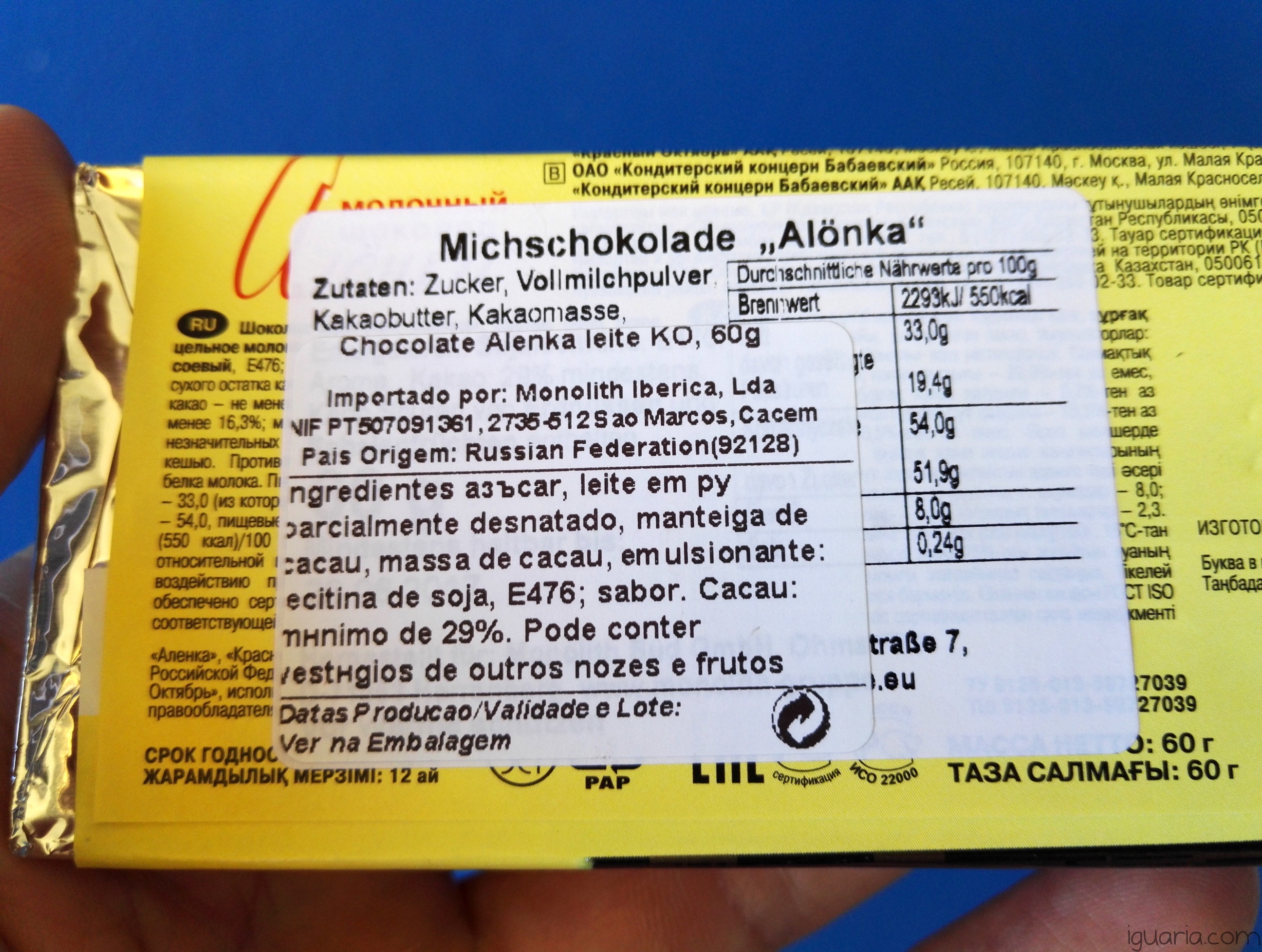 Então o que acho do Chocolate Alyonka? Acho que é um chocolate congelado no tempo, provavelmente é muito similar em ingredientes, sabor e textura desde que foi lançado em 1965 e como tal é um chocolate um pouco inferior aos chocolate mais comuns hoje em dia, o sabor não deixa de ser interessante e um pouco nostalgico, e a textura até pode agradar a crianças mas para o meu gosto não é nada de especial e como tal só vale a pena comprar por curiosidade ;)