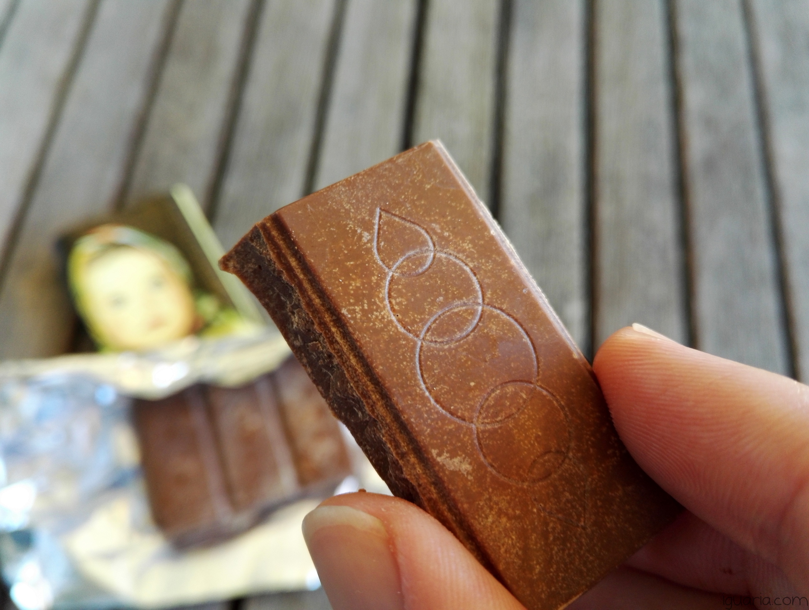 Vamos então ao chocolate, bem o pacote é adorável mas lembra-me um pouco daquela série de quadros famosos de crianças a chorar que eram muito populares nos anos 50, aquele olhar é lindo mas um pouco estranho ao mesmo tempo, também aparentemente ganhou alguns prémios em 1997,1998 e 2000, de resto o chocolate está embrulhado em prata.