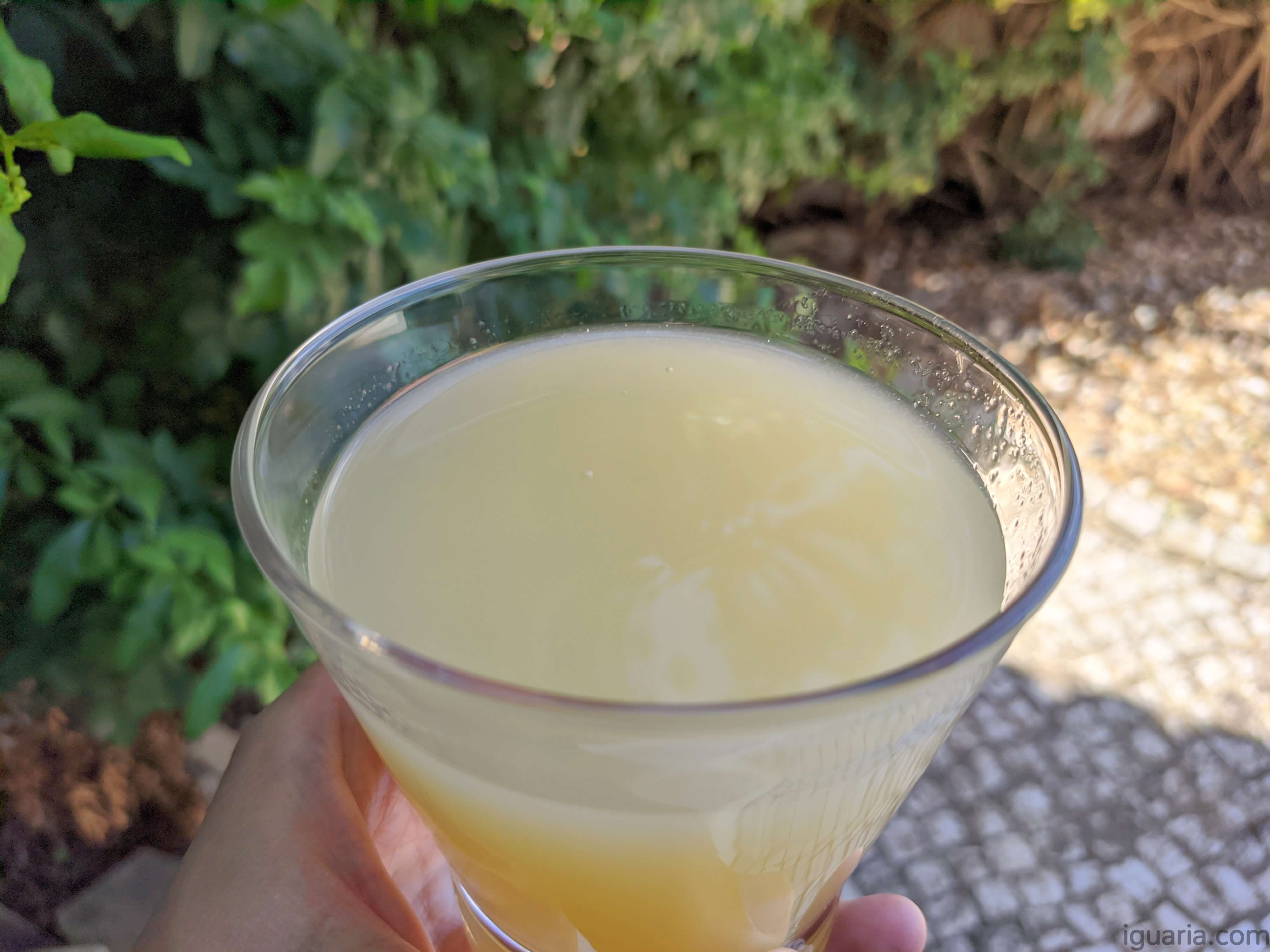 Para este a concentração é diferente, para cada copo de concentrado, tens de usar 4 copos de água, também adicionei menos açúcar, porque este um concentrado naturalmente mais doce, mesmo que acabei por usar uma quantidade grande na mesma, bem se calhar mais parecido com um sumo de fruta baseado em concentrado (exatamente o que isto é).