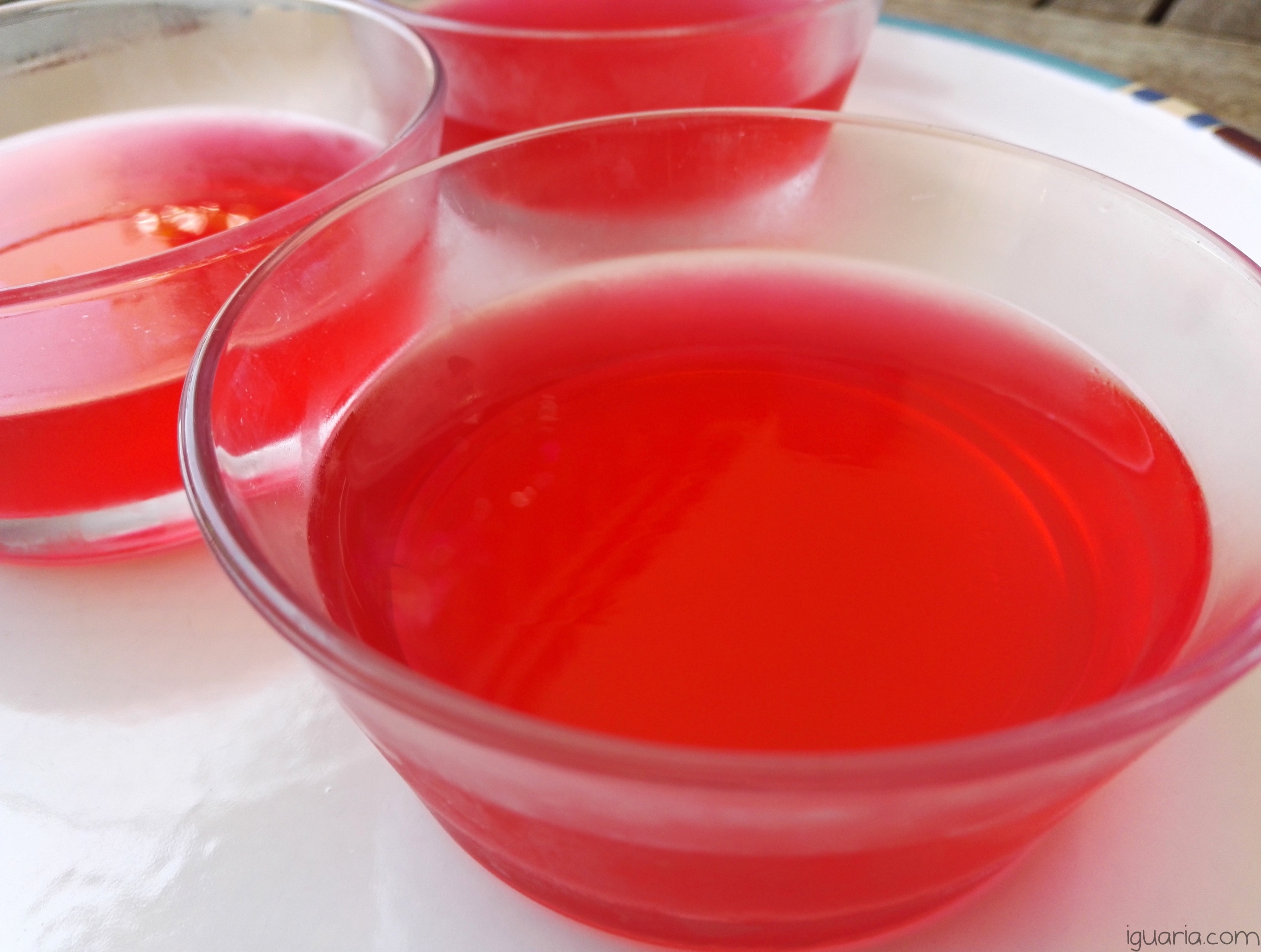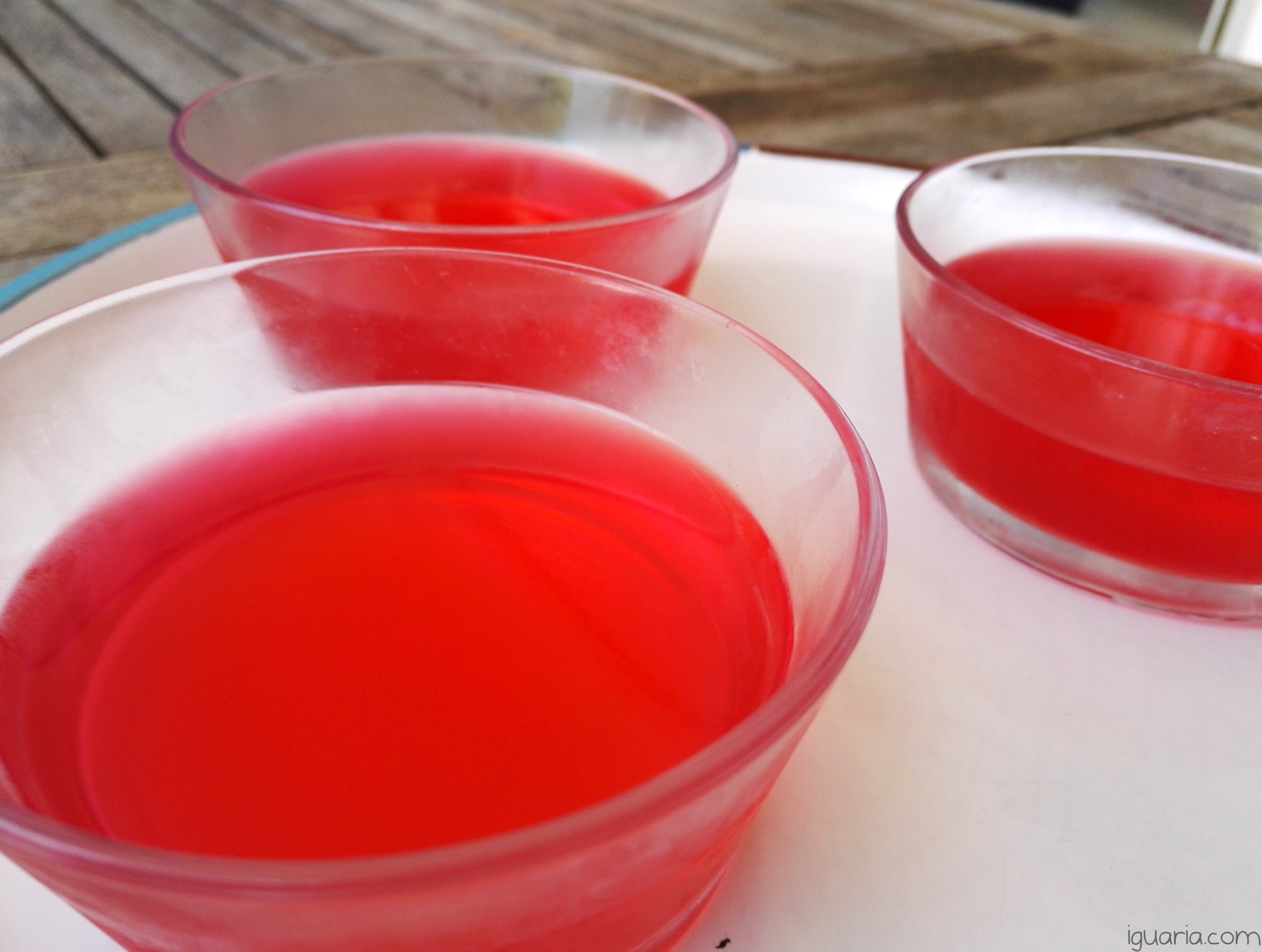 - Junta mais meio litro de água fria, volta a mexer e deita o preparado numa tigela grande ou em tigelas pequenas, leva ao frigorífico por umas 4 horas até a gelatina ficar assente, faz-se literalmente em 5 minutos!