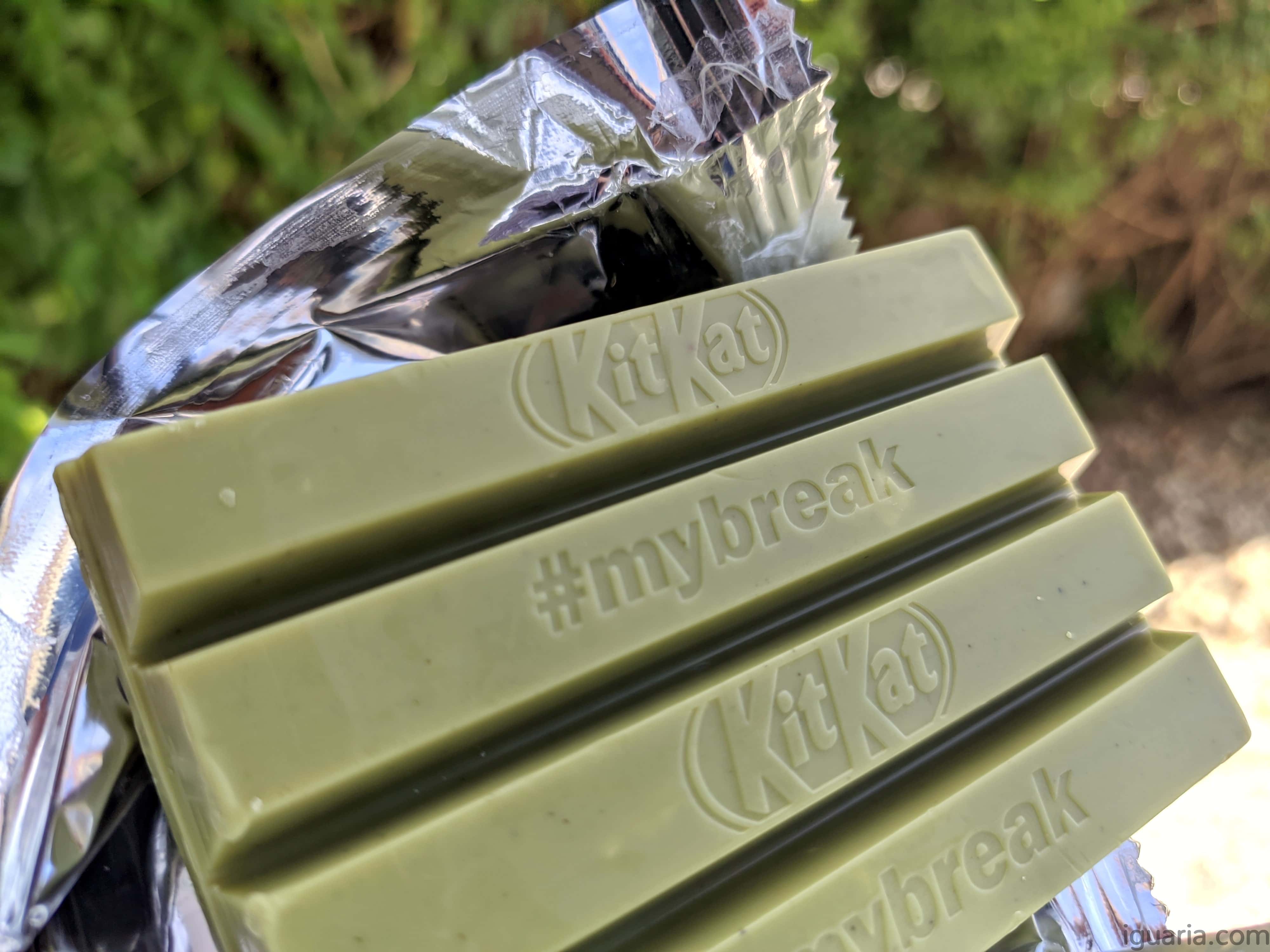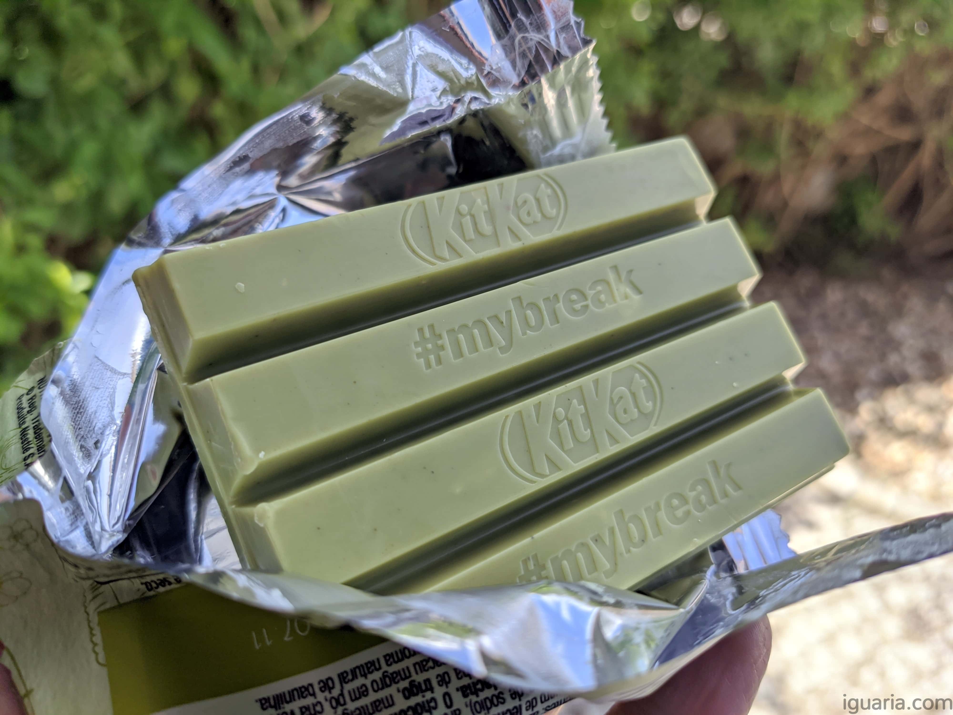 O chocolate em si é como qualquer Kitkat, o chocolate exterior sabe a chocolate branco com um pouco de pó de matcha e o interior não sei se tem algum matcha acho que é o creme tradicional de um Kitkat, tudo junto é um pouco gorduroso e demasiado doce.
