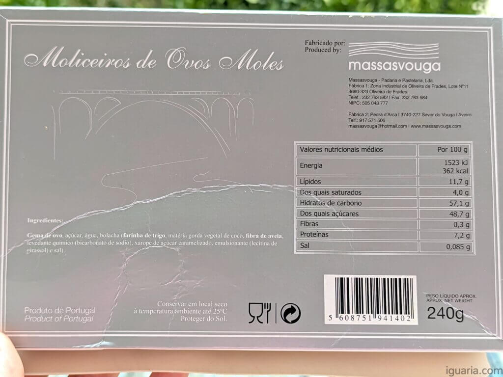 Humm bem ovos moles são ovos moles, gema de ovo e açúcar, nada a dizer, é mais a qualidade dos ingredientes e a confecção do que ser algo complexo, agora esta bolacha para os moliceiros claramente não é um produto artesanal ou tradicional, não estou a ver uma avozinha a usar óleo de coco, fibra de aveia com lecitina de girassol… hummm