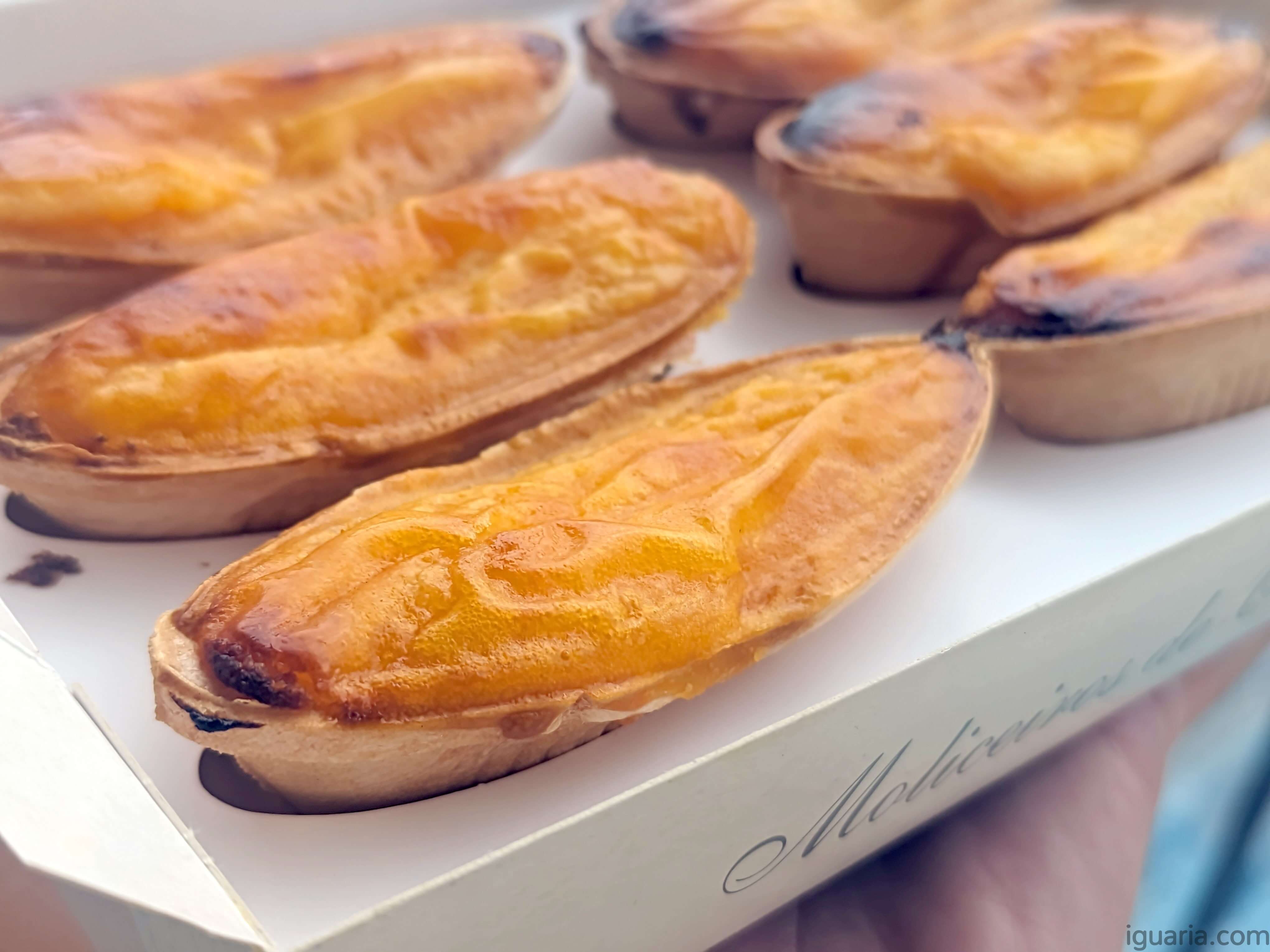 Como disse em cima os doces em si têm o formato de uns barquinhos com uma base similar a hóstia mas castanha e recheados de claro… ovos moles, tudo foi ao forno porque os ovos moles criaram uma cobertura por cima e tem as pontas ligeiramente queimadas, é um produto… hummm visualmente simpático! ;D