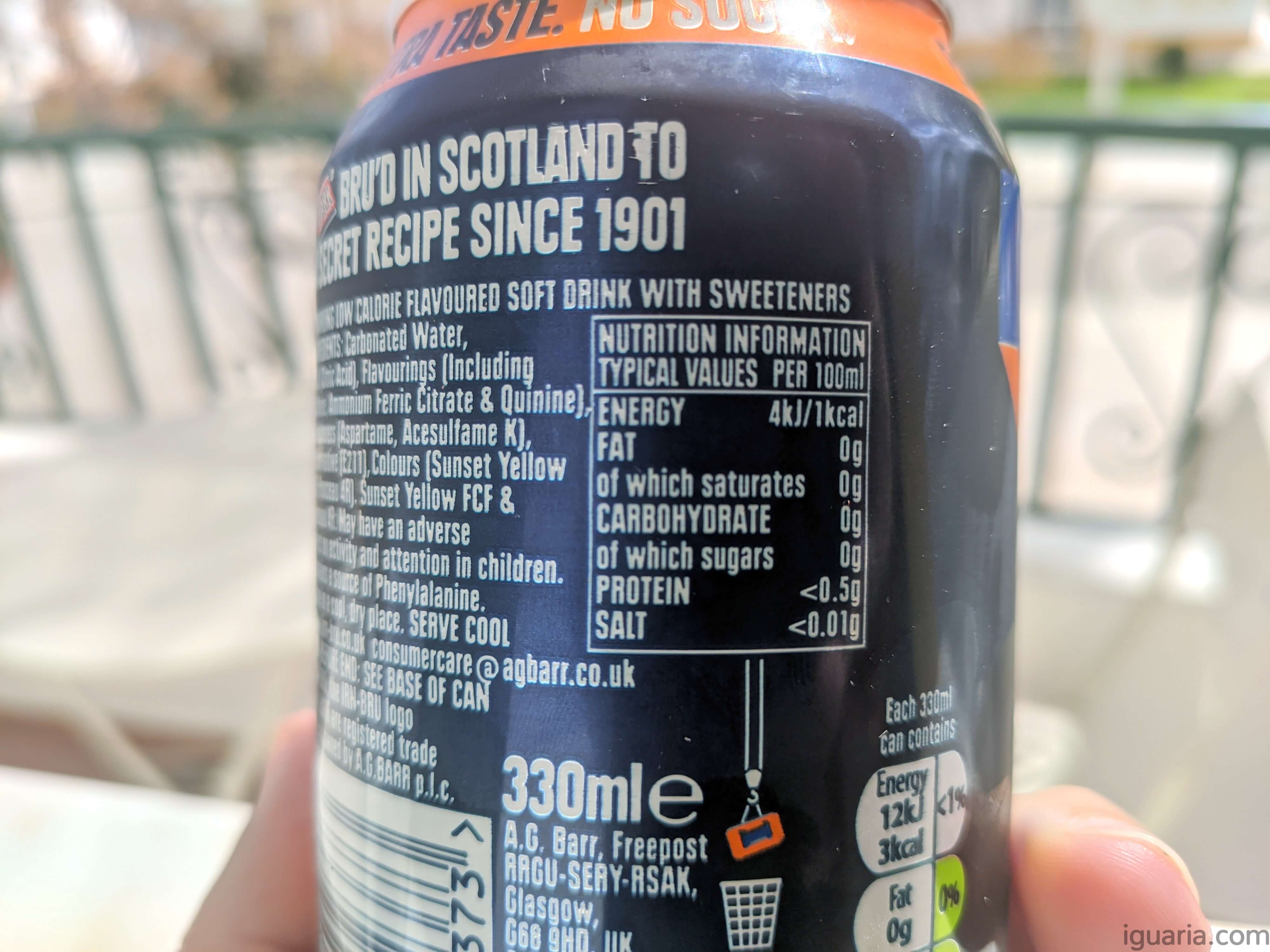 Em termos de produto, acho que é um produto até bem concebido em especial se é para retirar calorias de pessoas que bebem Irn Bru regularmente, isso é sempre de louvar, mas em termos do produto em si, epá bom para experimentar, mau para beber regularmente, não sei como posso ser mais claro.