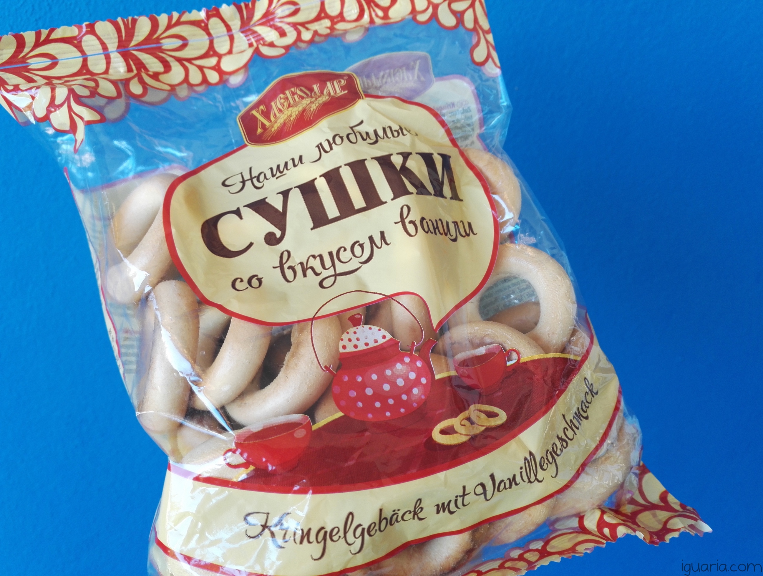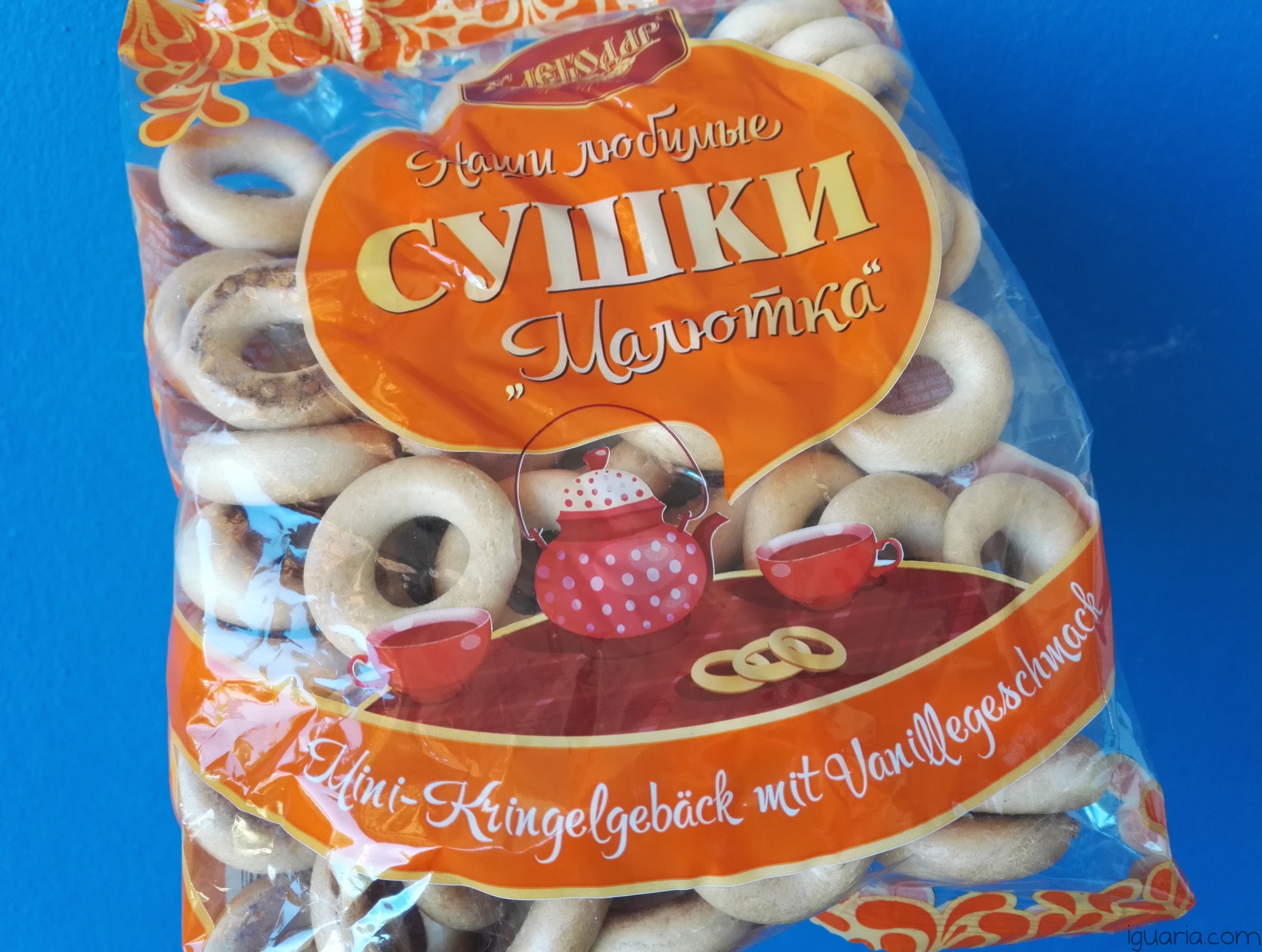 Aqui vão uns Sushki, estes são uns biscoitos tradicionais Russos, muito populares também em vários paises do leste da Europa, estes são uns biscoitos normalmente estaladiços, com pouco açúcar para comer como um docinho ou snack, muito similares ao gosto de pão, estes são feitos de uma forma muito similar a um pretzel, cozendo primeiro em água doce e depois levando ao forno para acabar de cozinhar e secar.