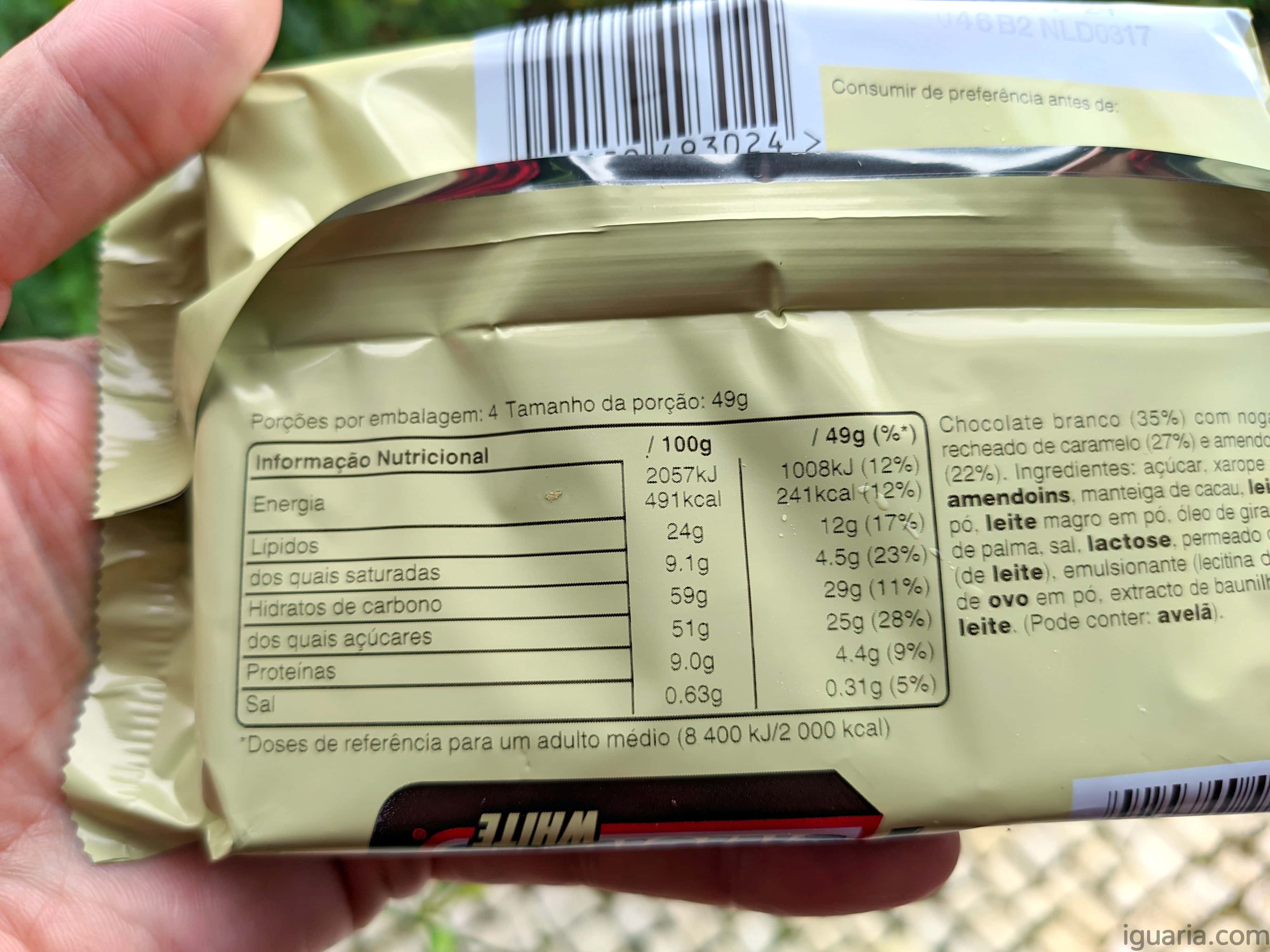 O tradicional chocolate de leite do Snickers não é nada de fantástico, é só provares a ponta de um Snickers ou Mars e provares um cubo de chocolate de leite da Nestlé ou da Cadburry e notas logo a diferença de qualidade entre os chocolates de leite, por isso não vou recomendar este Snickers White, se gostares do tipo acho que (como a publicidade do Snickers diz) “vais ficar mais satisfeito” com o Snickers Tradicional que com esta versão limitada.