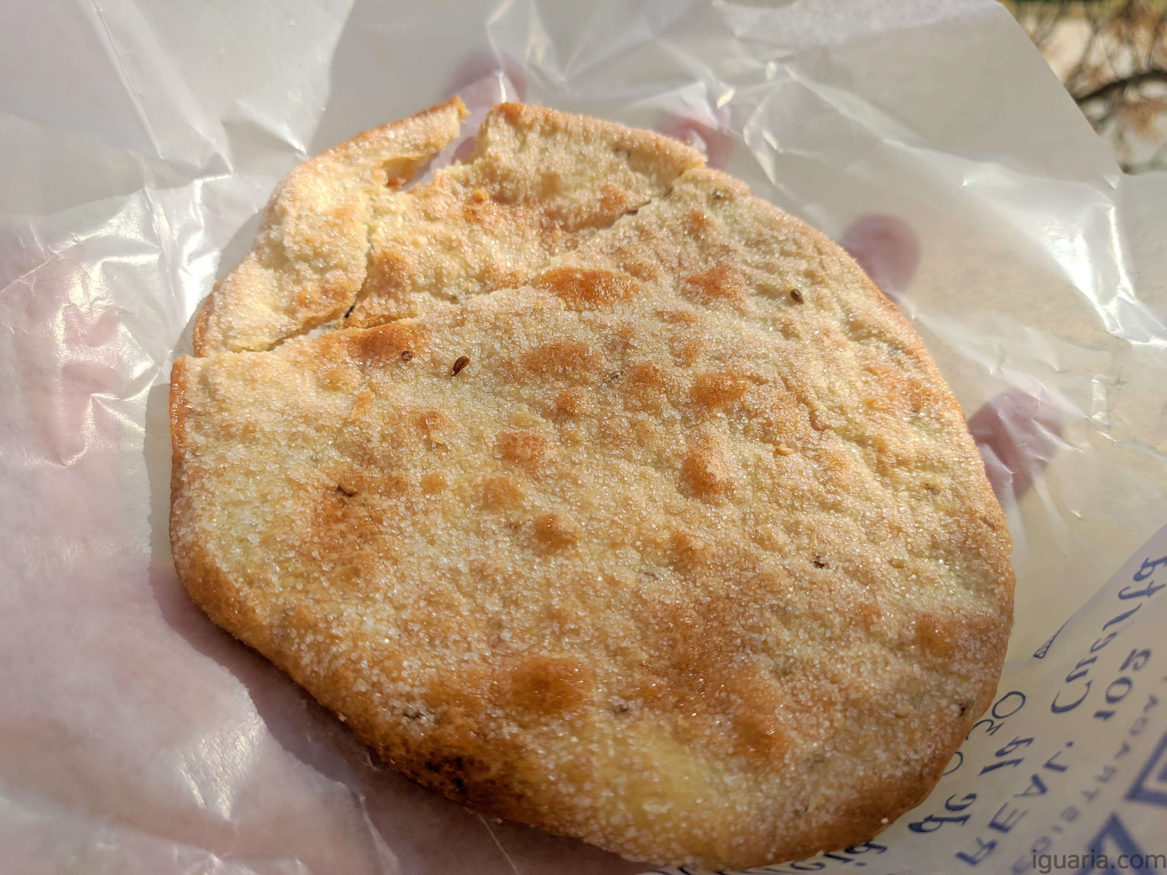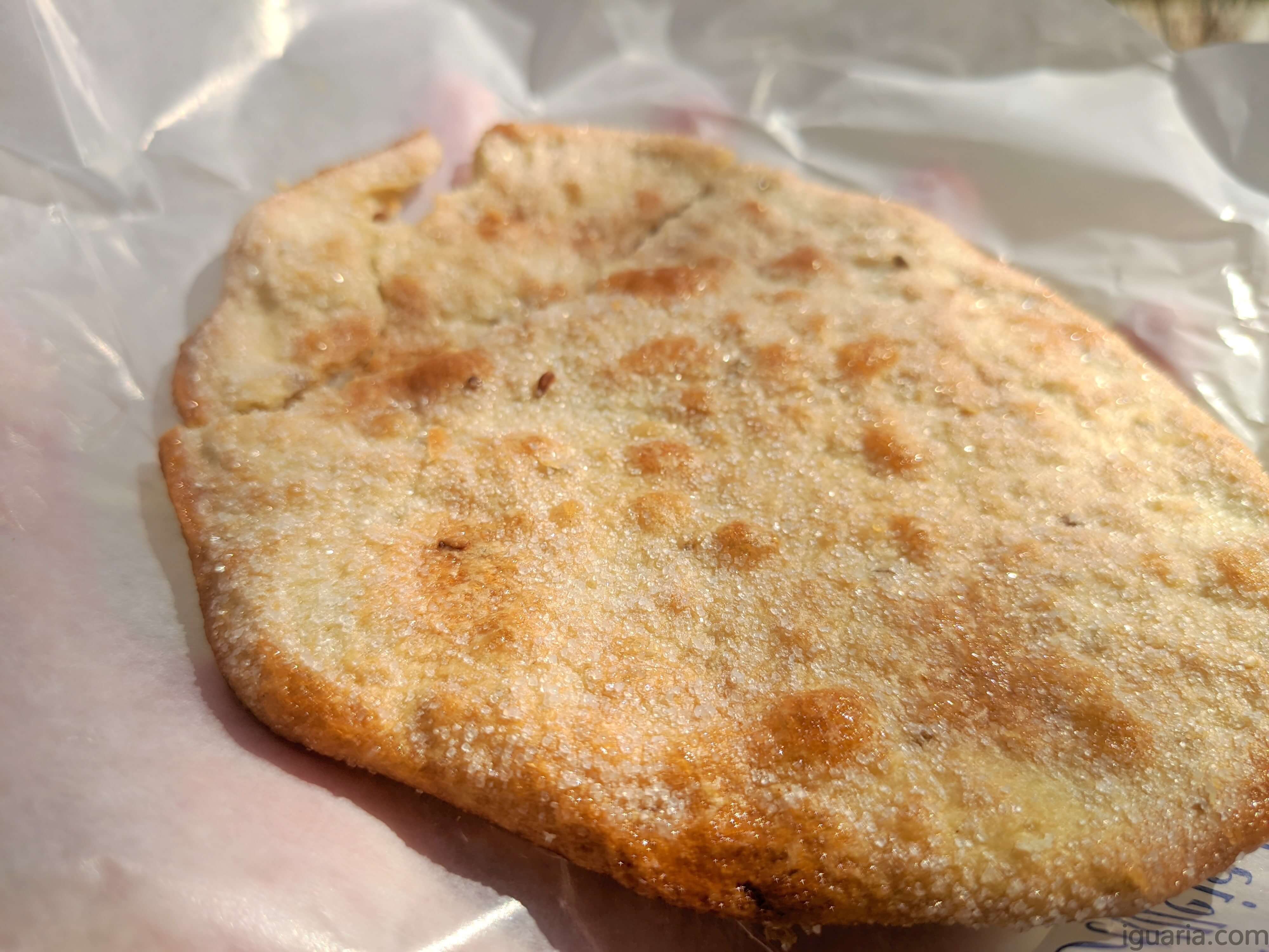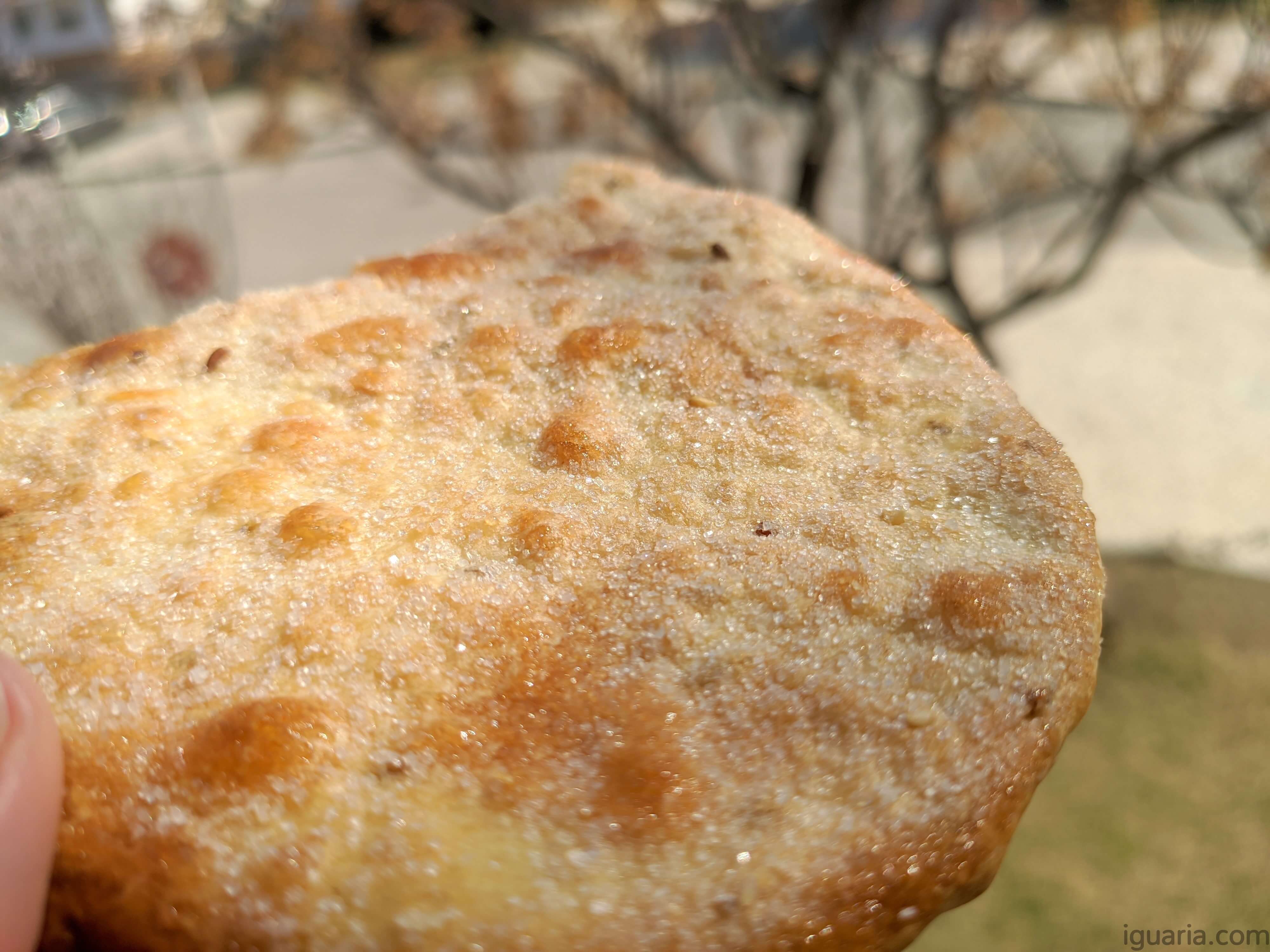 De todas as tortas só a de cima é que vinha um pouco quebrada, mas estas tortas são um pão fino estaladiço e frágil, logo é natural os cuidados e natural que uma ou outra quebre, as tortas em si são super finas e estaladiças, com um aroma forte a azeite e erva-doce, o exterior tem uma camada fina de açúcar que combina bem com o resto do pão, oleoso e intenso dentro e doce por fora.