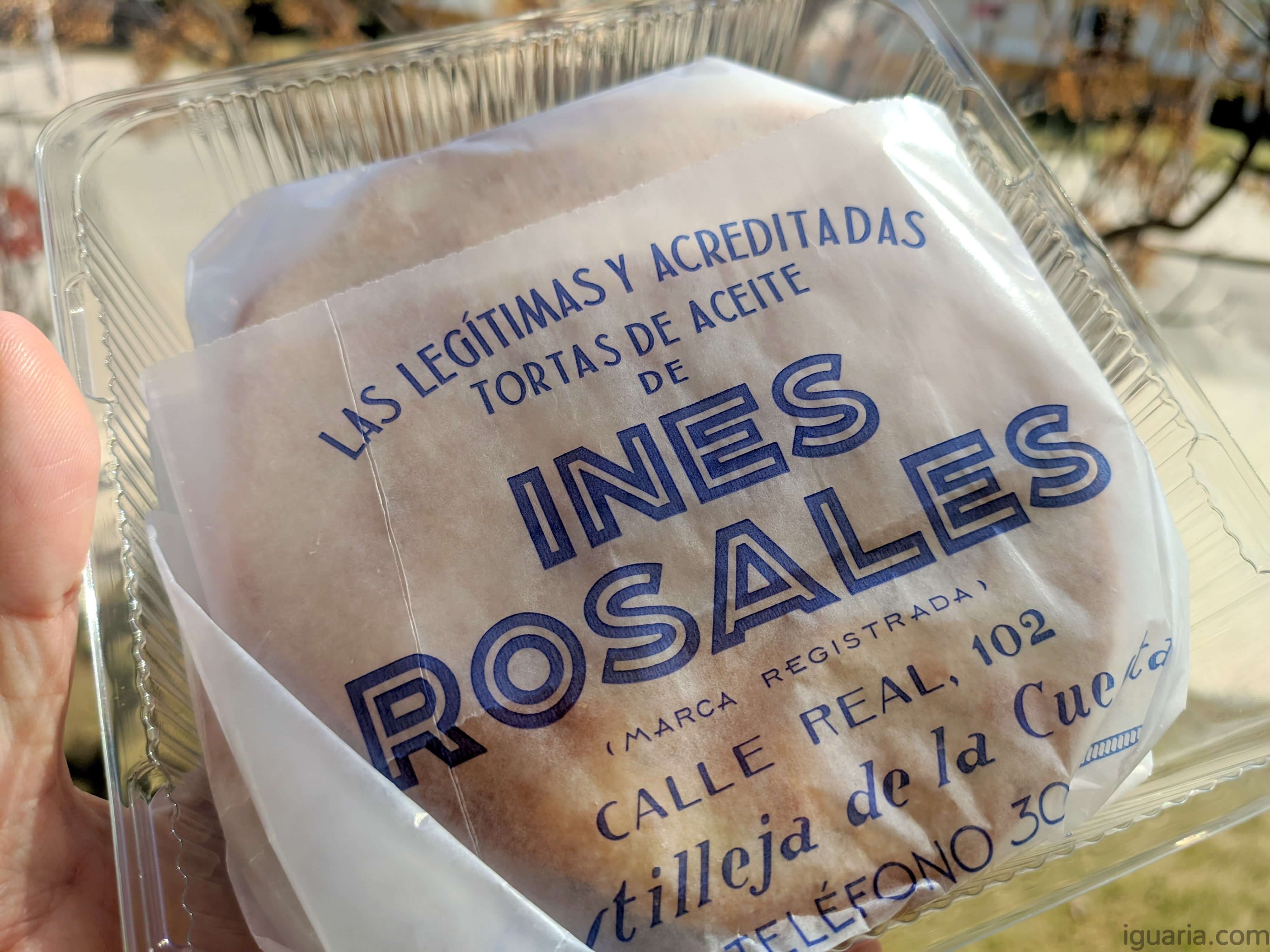 A Legenda diz: “Tortas Realmente Únicas – Inés Rosales Cabello, seguindo a receita familiar, transmitiu-nos um tesouro gastronómico que se mantém através de um percurso único que mistura história e modernidade. São feitas à mão, uma a uma, de forma delicada, imediatamente antes da cozedura. As Tortas de Azeite são confeccionadas com ingredientes naturais desde 1910. Embaladas individualmente na sua apresentação original, cada Torta é única e singular, com uma textura crocante, leve e um sabor inconfundível. São pedaços que fazem do passado o presente. Aprecie-as, saboreie-as por si só ou acompanhe-as de mil maneiras diferentes.”