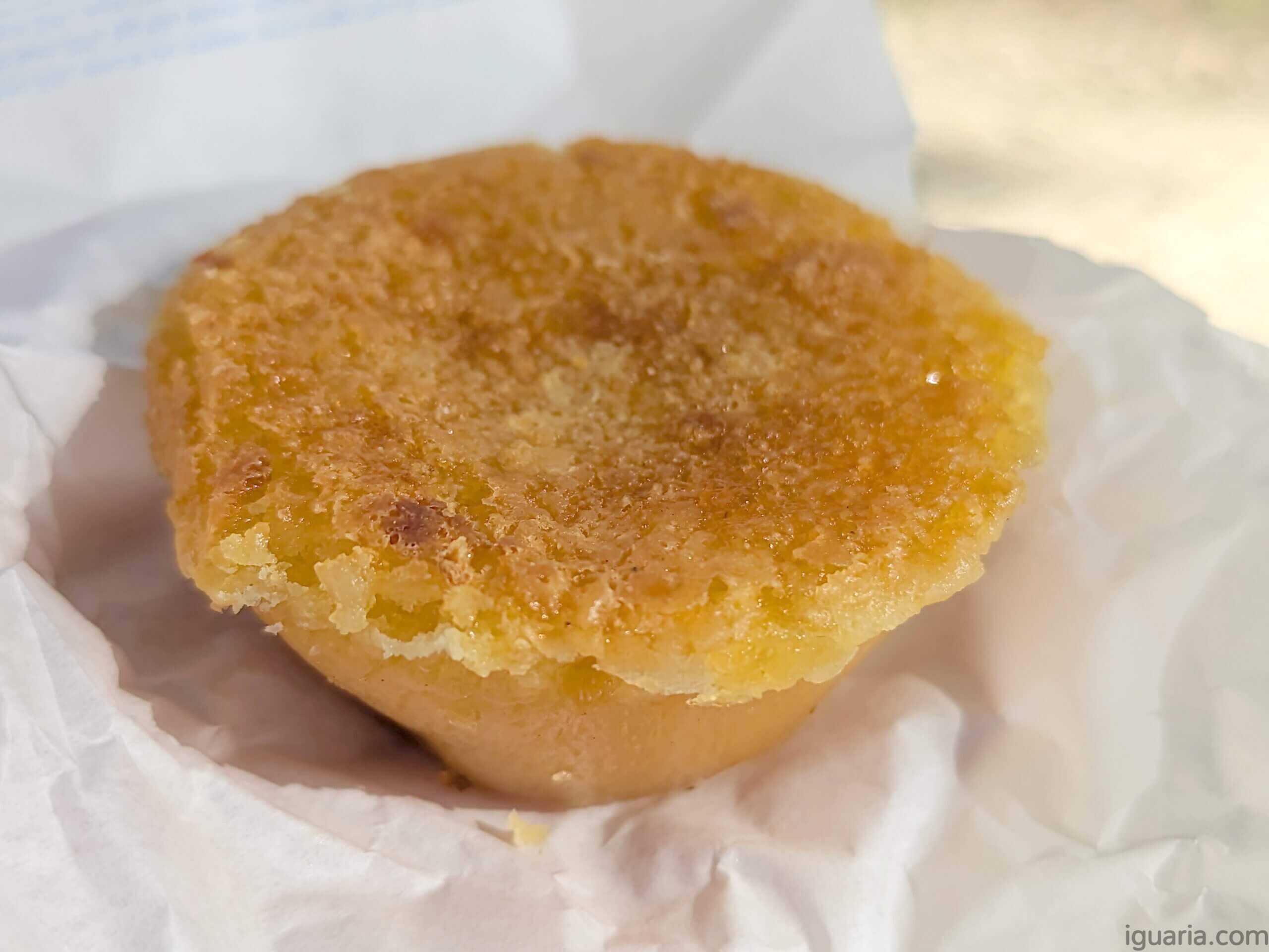 O pastel é super frágil, quebradiço e doce, sabe a uma gemada com um toque de feijão e amêndoa, com um topo quebradiço e um interior hiper cremoso, é doce, não vamos esconder essa realidade, mas não é super doce, no todo é um doce bem agradável, eu gosto bastante da textura sedosa, ajuda bastante que provavelmente foi acabado de fazer.