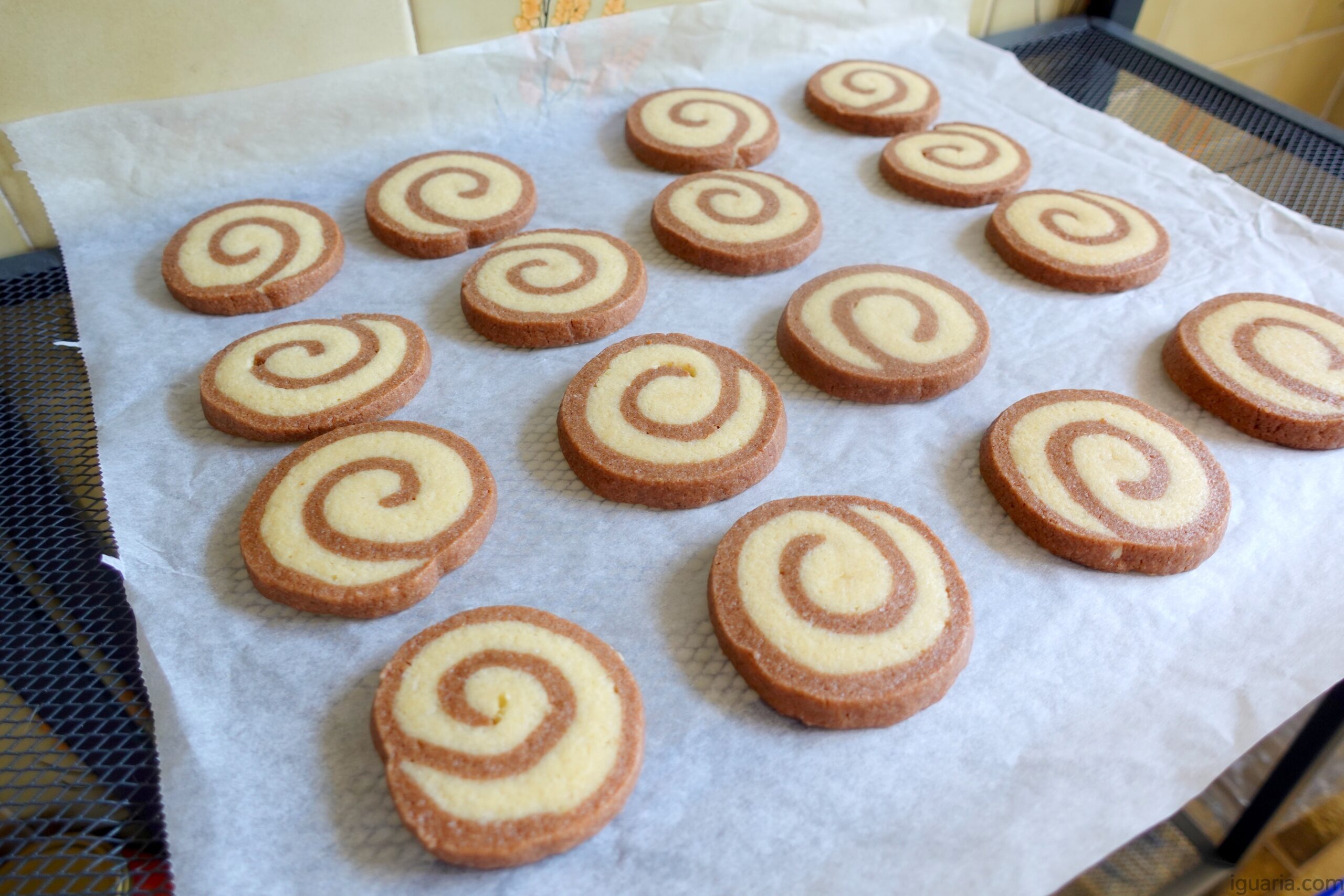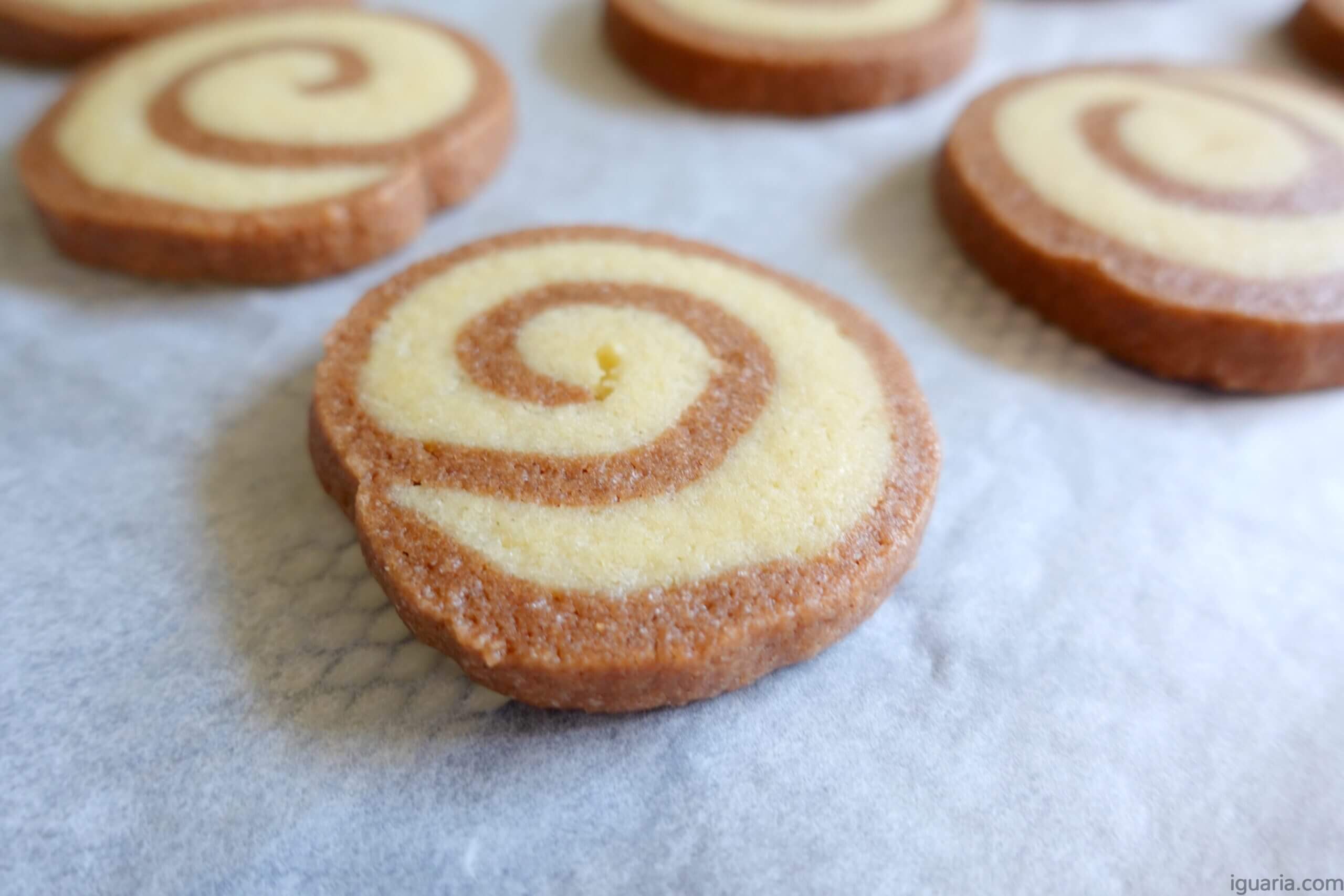 Esta receita de Bolachas Espiral de Baunilha e Chocolate Pinwheel Cookies foi criada inicialmente no Iguaria.com.