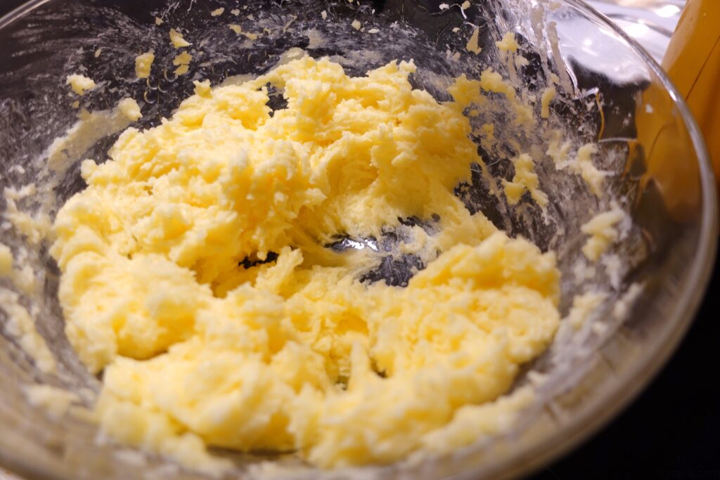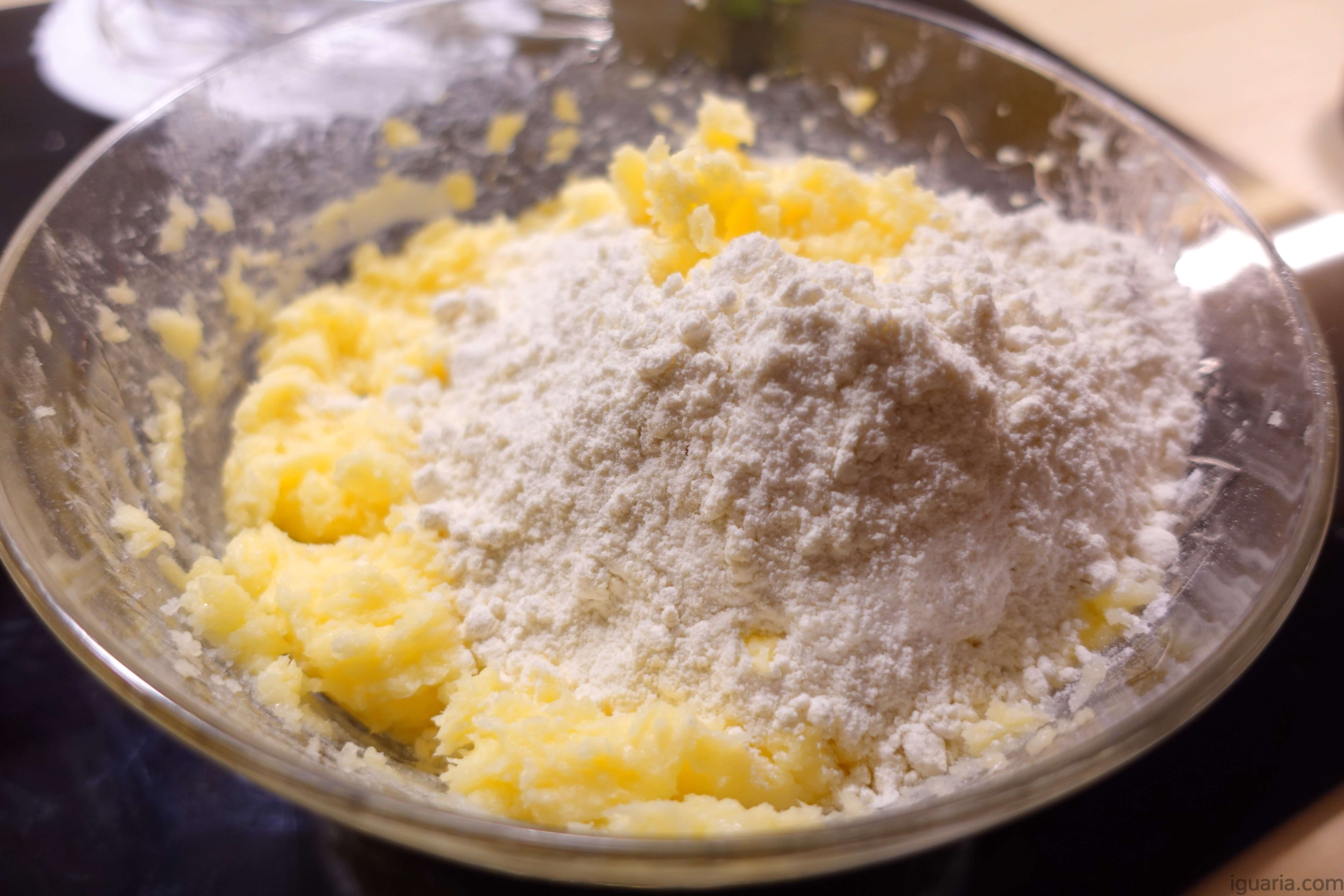 - Começa por preparar as bolachas de manteiga, bate bem a manteiga a temperatura ambiente com o açúcar até ficar super cremoso.