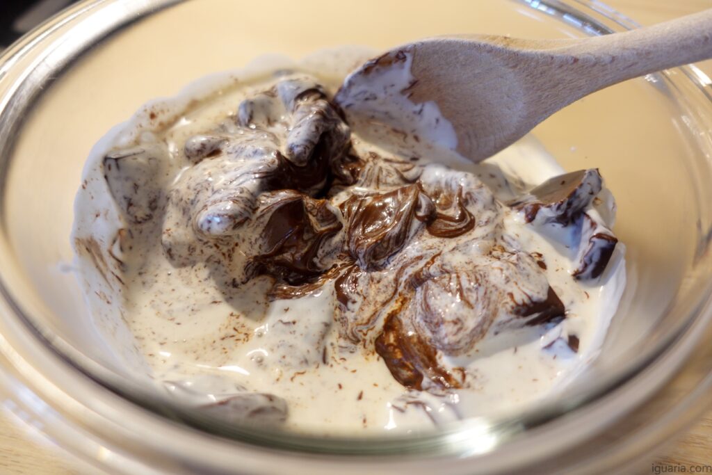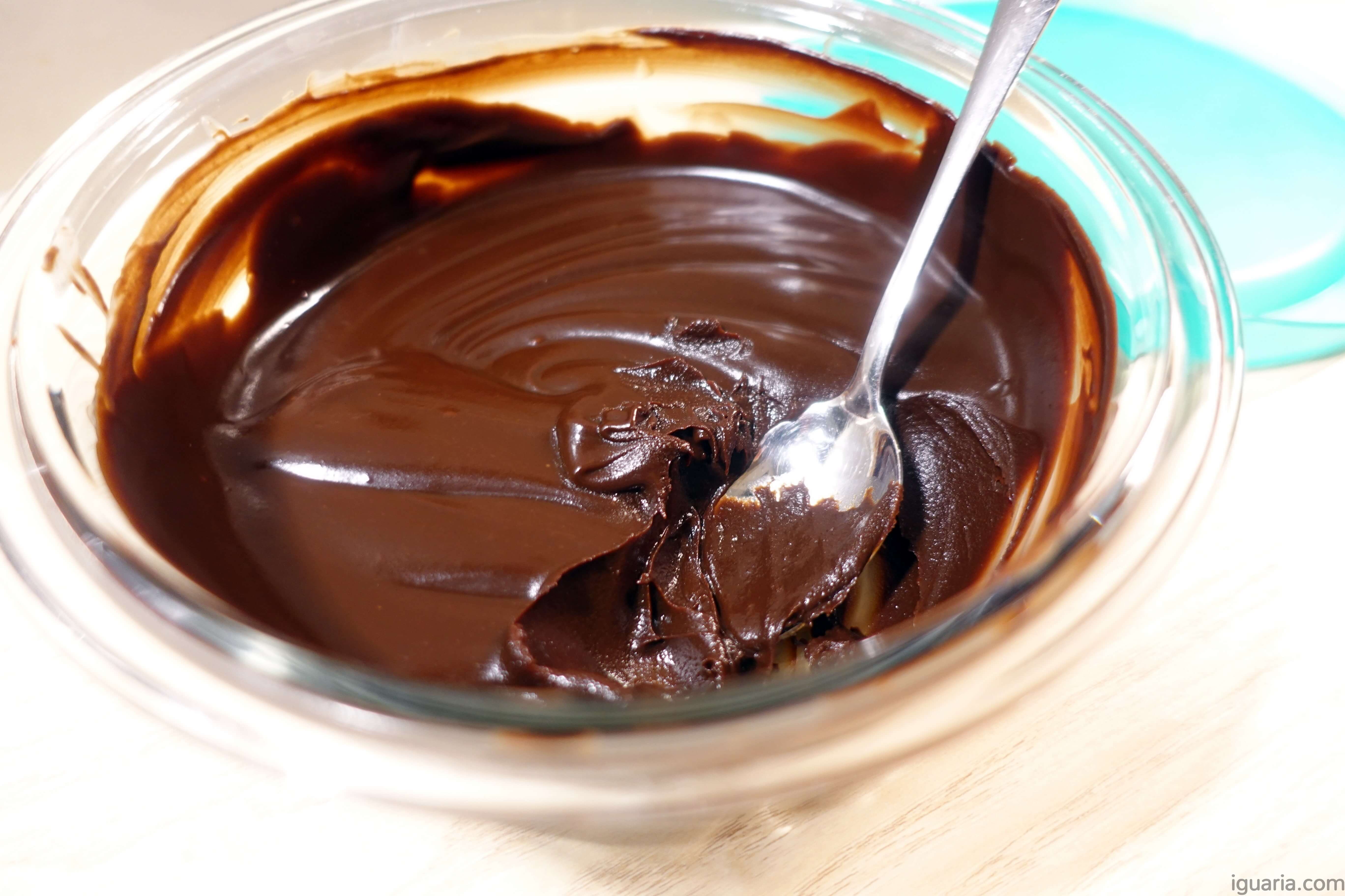 Tu queres a ganache morna para poderes espalhar facilmente, mas não queres ela demasiado quente (vai escorrer) ou demasiado fria (vai ser dificil de espalhar).