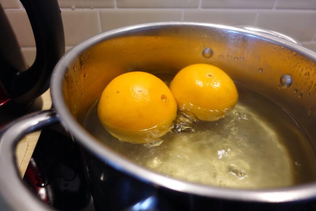 - Começa por lavar bem as laranjas, depois põe estas num pequeno tacho e cobre de água, leva a um lume alto até levantar fervura, deixa ferver por uns 10 minutos (Fazes isto para tornar a casca menos amarga e para retirar coisas como cera ou outras coisas menos boa que a casca tenha).
