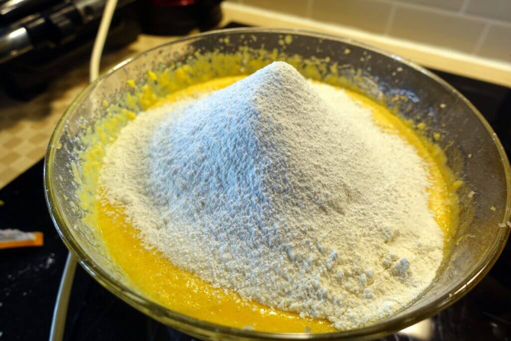 - Por fim peneira a farinha, o fermento e uma pitada de sal e envolve tudo até obteres uma bela massa.