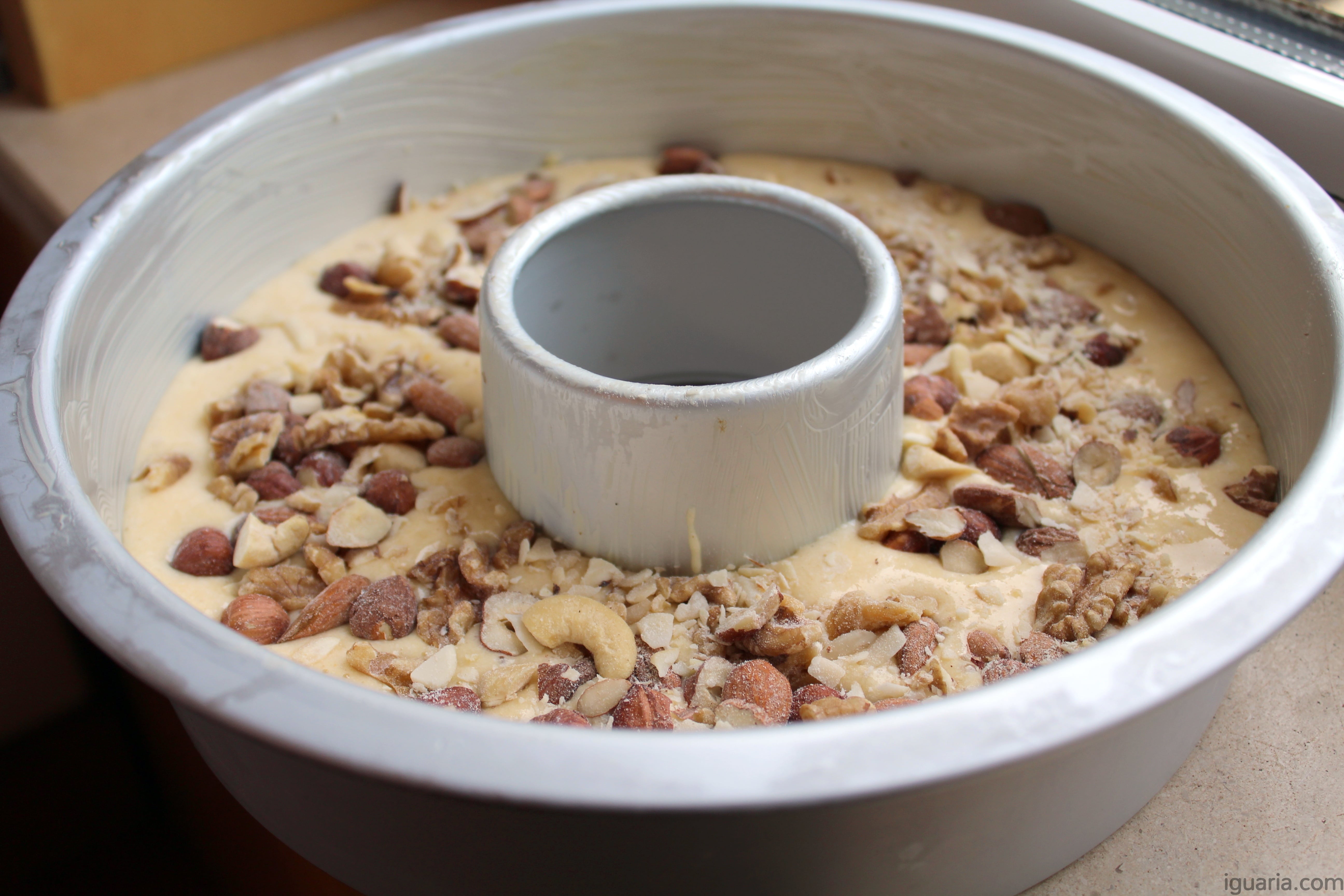 - Bate as claras em castelo e envolve estas na massa, pica os frutos secos polvilha estes com uma pitada de farinha e junta a massa, deita tudo na forma, polvilha de amêndoas e leva ao forno por uns 40 minutos até ficar bem assado, retira e desenforma, bom proveito.