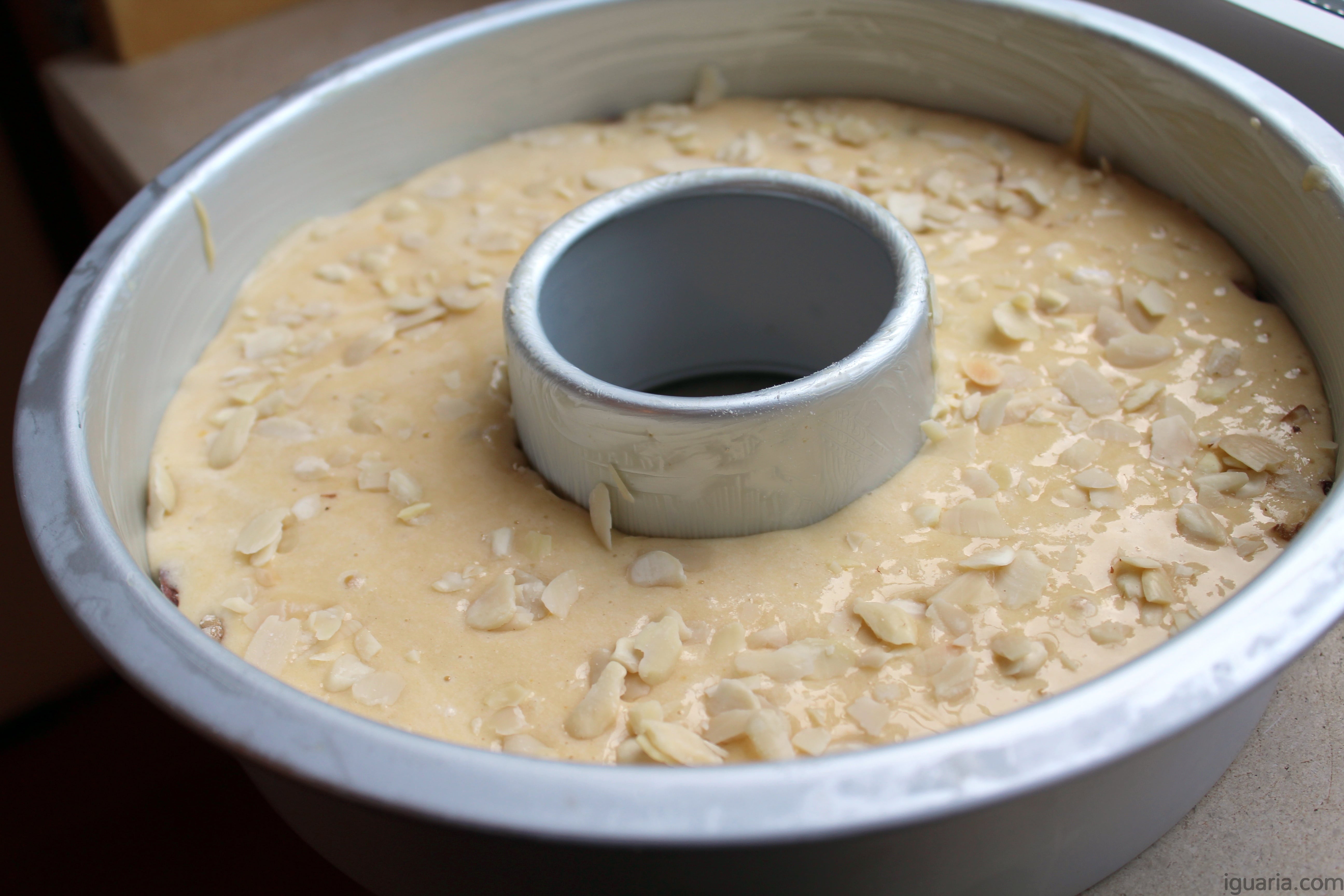 - Por fim pica os frutos secos e polvilha estes de farinha e mistura na massa, deita esta na forma e por fim polvilha esta de amêndoas laminadas, leva ao forno.