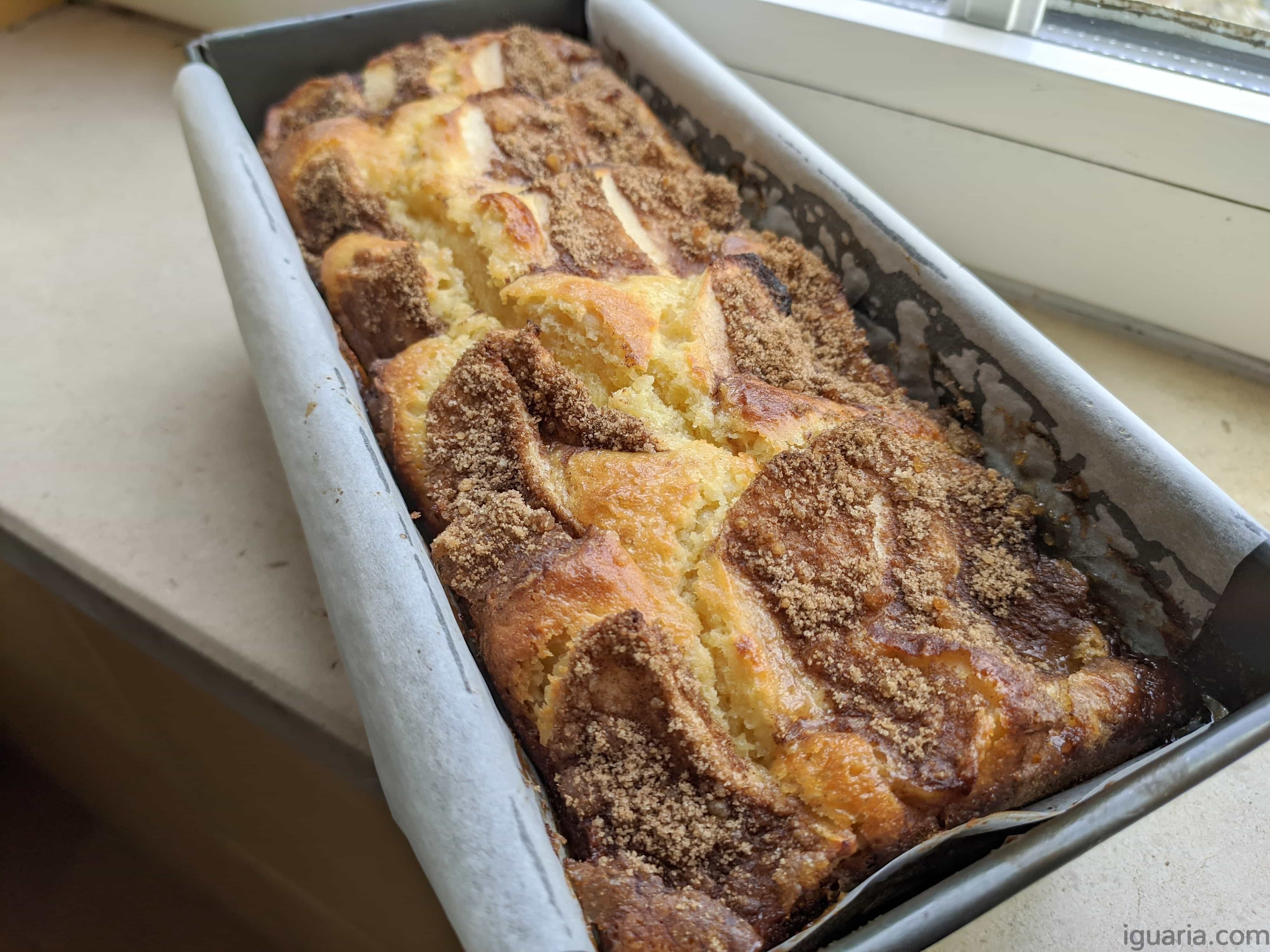 Yay bolo, quem é que não gosta de um belo bolo, este saiu fenomenal, eu acho que este género de bolos com fruta na massa tendem a sair sempre bem, desde que a proporção esteja correta a humidade extra da fruta deixa o bolo mais tenro e se adicionares mais fruta por cima e canela heheh fica mesmo rústico e delicioso, não se vê este género de bolos á venda numa padaria, não é bonito, mas é… uma iguaria TADAMMMMM! ;D