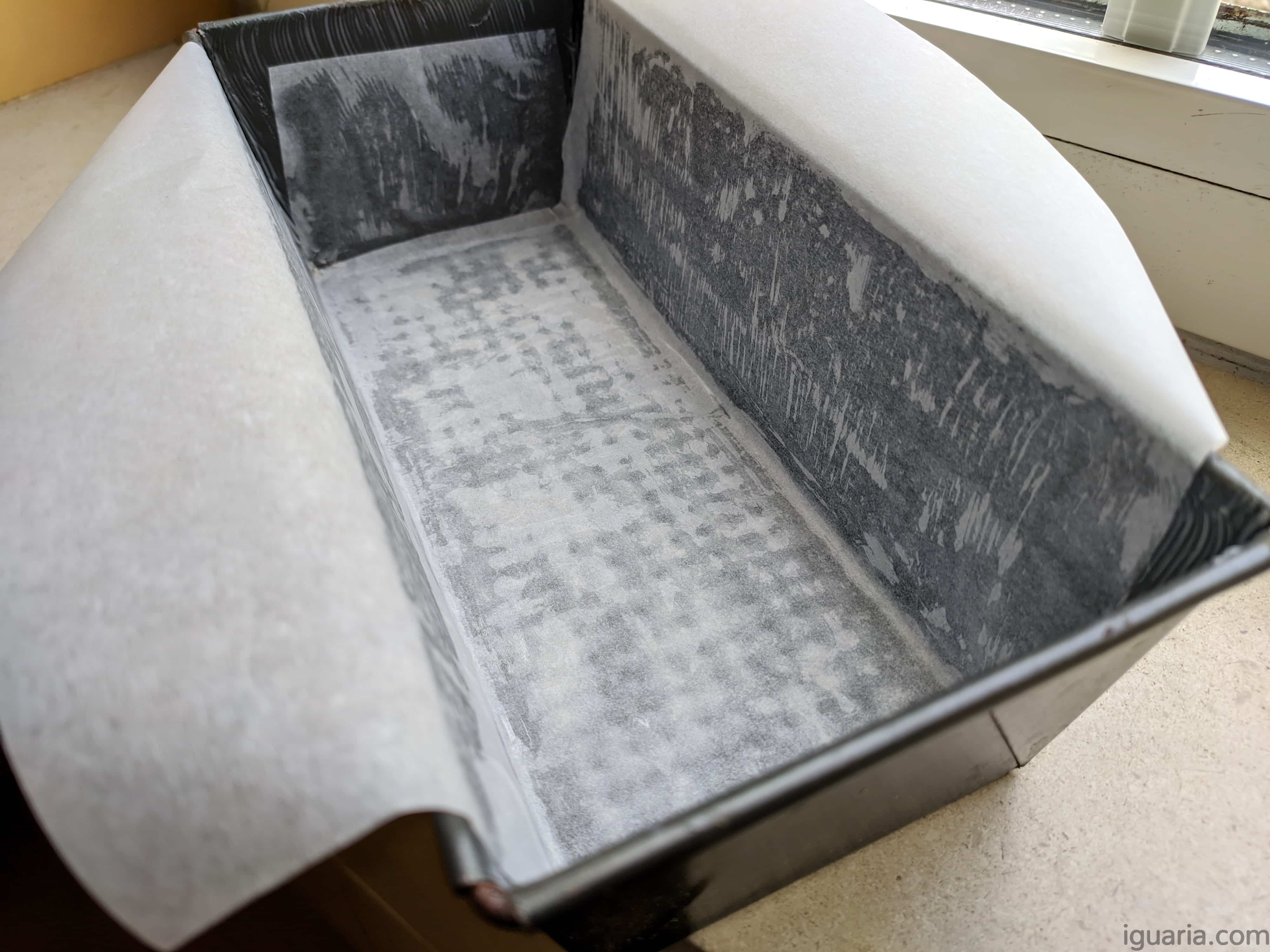 - Pré-aquece o forno a 180ºC e forra uma forma retangular com papel anti-aderente e manteiga.