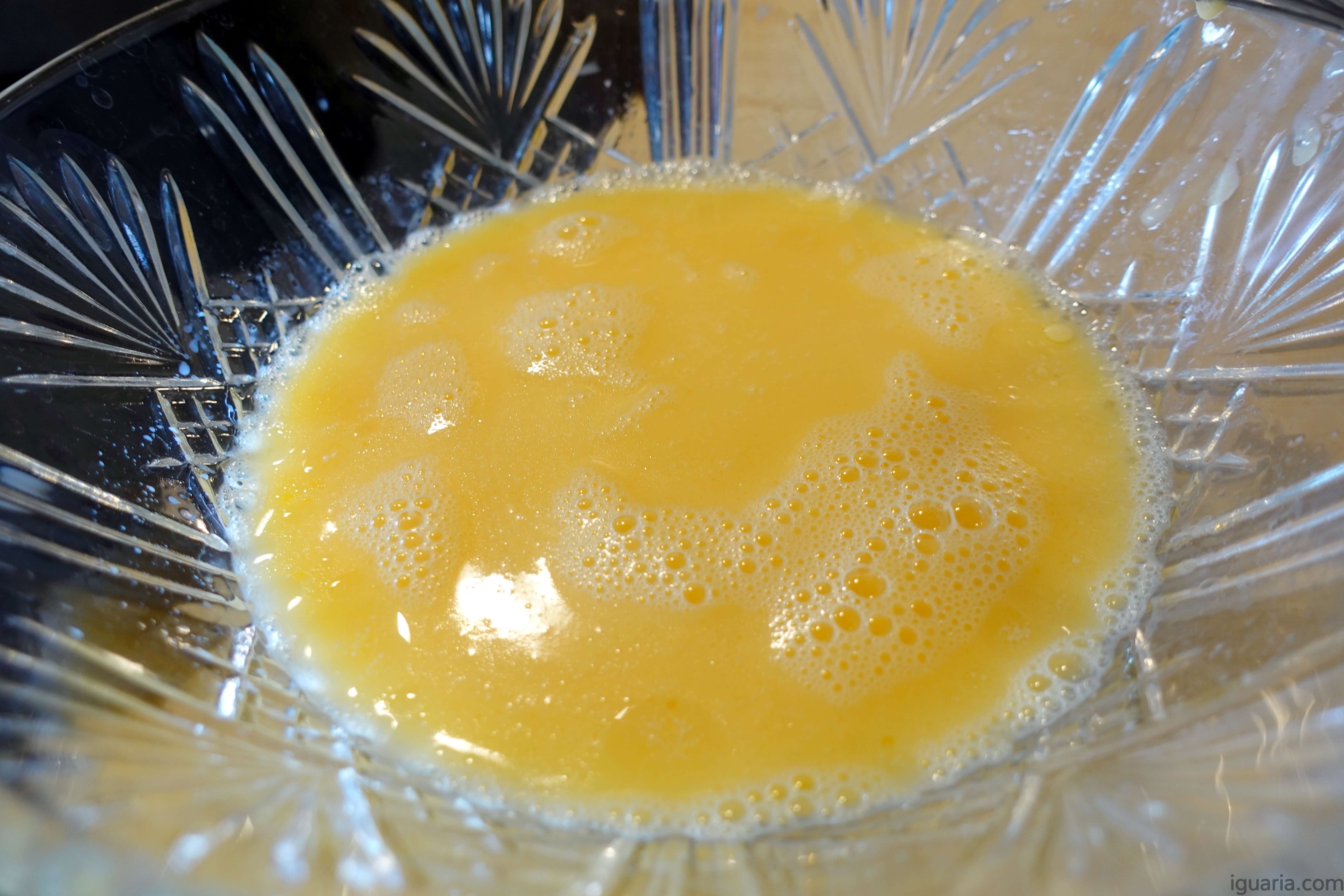 - Agora adiciona numa tigela a parte os ovos, leite e óleo, bate tudo bem até cremoso.