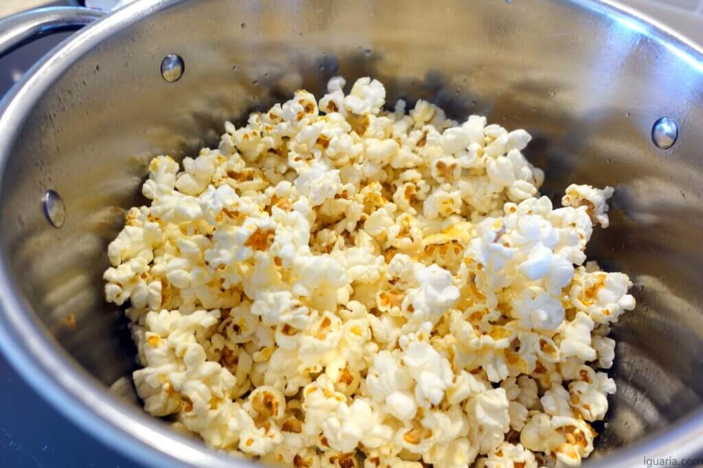 - Quando os sons de estalar das pipocas começar a ser menos constante tipo só ouvires estalar cada 2 ou 3 segundos, então a maioria das pipocas já estalou, desliga o lume.
