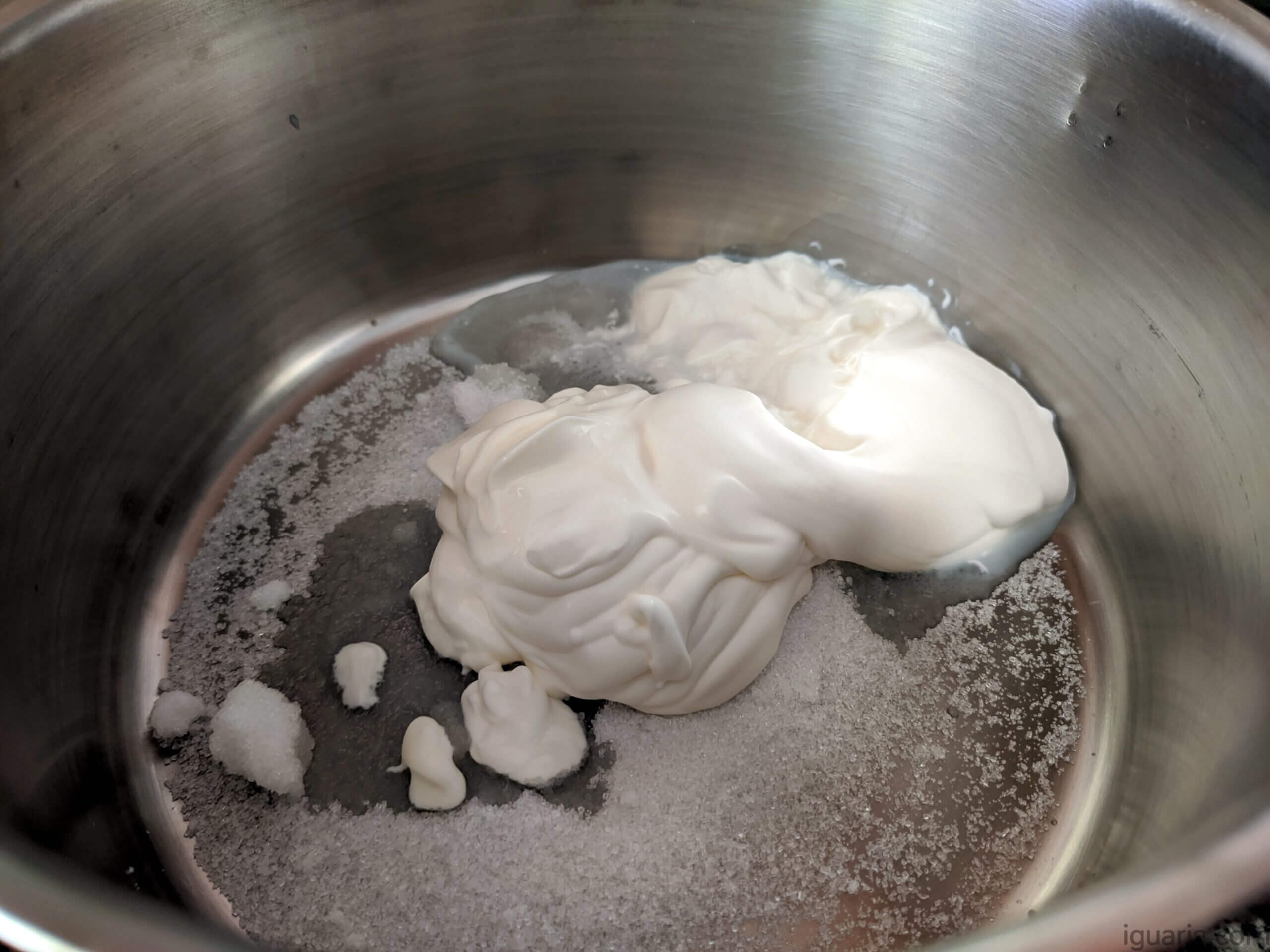 - No dia seguinte, junta as natas com o açúcar e bate á velocidade máxima com a batedeira (podes adicionar também um pouco de extrato de baunilha se quiseres), bate até ficar tudo bem cremoso.