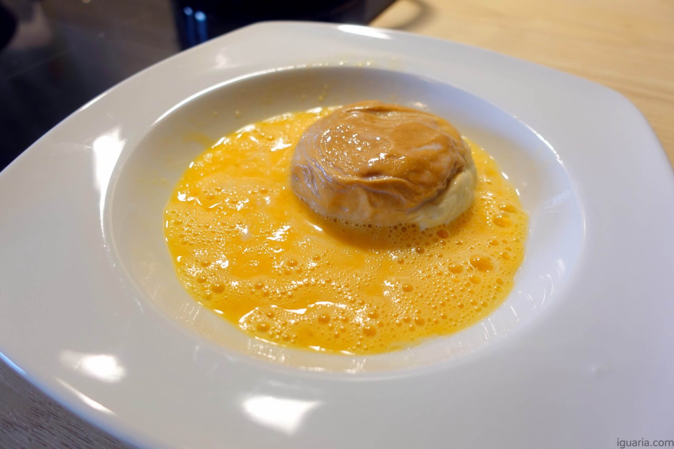 - Agora passa cada pãozinho pelo leite quente, deixa embeber bem o leite (eu normalmente imagino o pão como uma esponja, se espremeres um pouco podes sentir se ele está bem embebido ou se ainda está seco no centro).