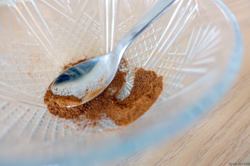 2. Junta a canela, noz moscada, cravo-da-índia e o cardamomo numa tigela.