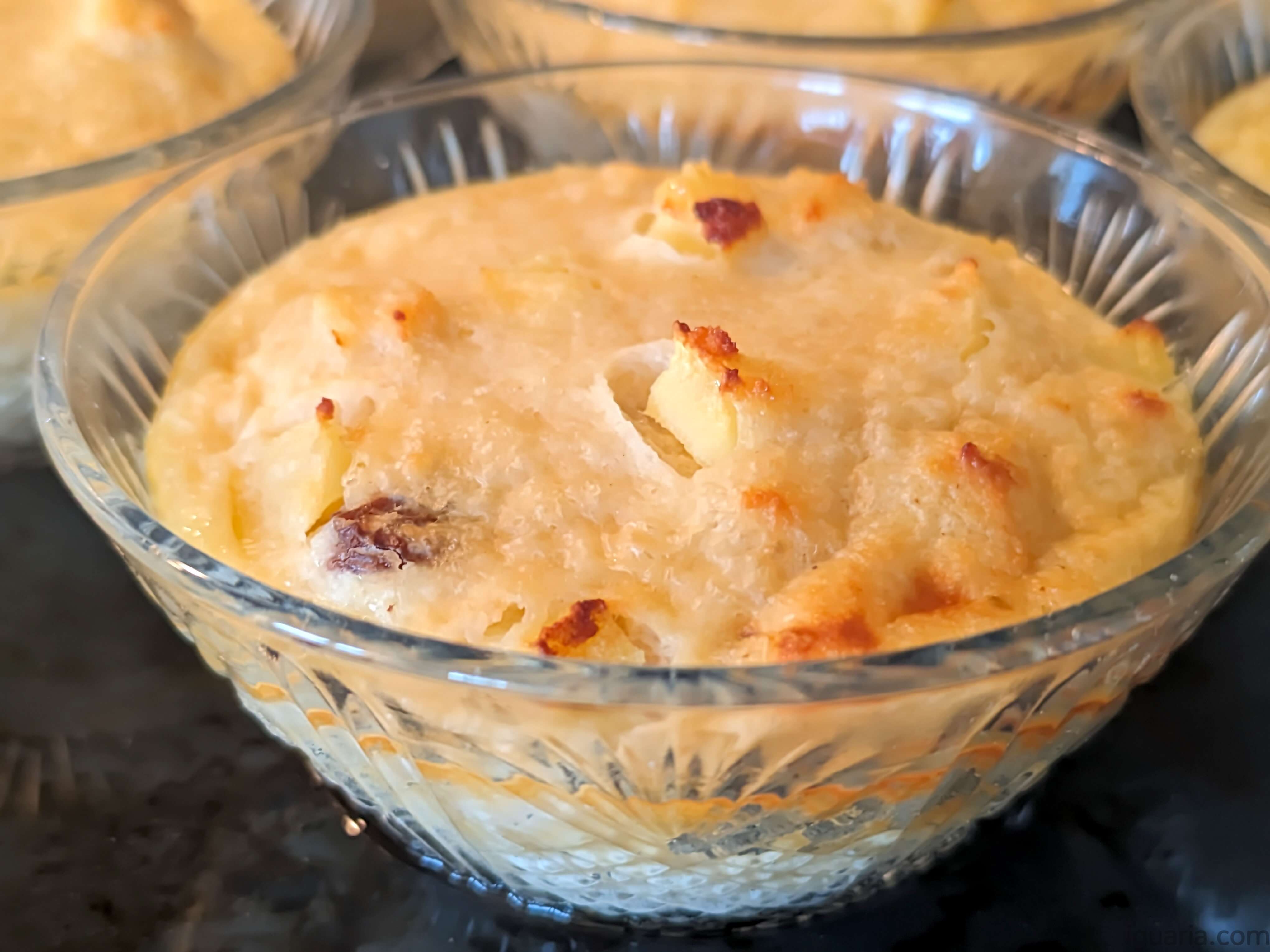Pudim Cremoso de Pão de Rio Maior com Maçãs e Passas