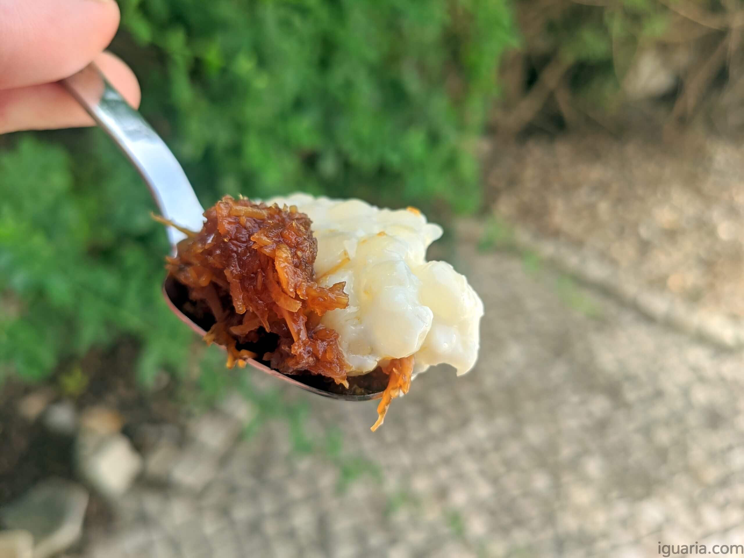 Hehehe, olha que delíciaaaaa de sobremesa que temos aqui! Este pudim de tapioca com cocada brasileira é uma verdadeira…. eu ia dizer explosão, mas se calhar é mais uma implosão hahahaha, super cremoso com o aromático e doce do coco, a cocada é só aquele extra hahaha, montes de texturas e sabores!